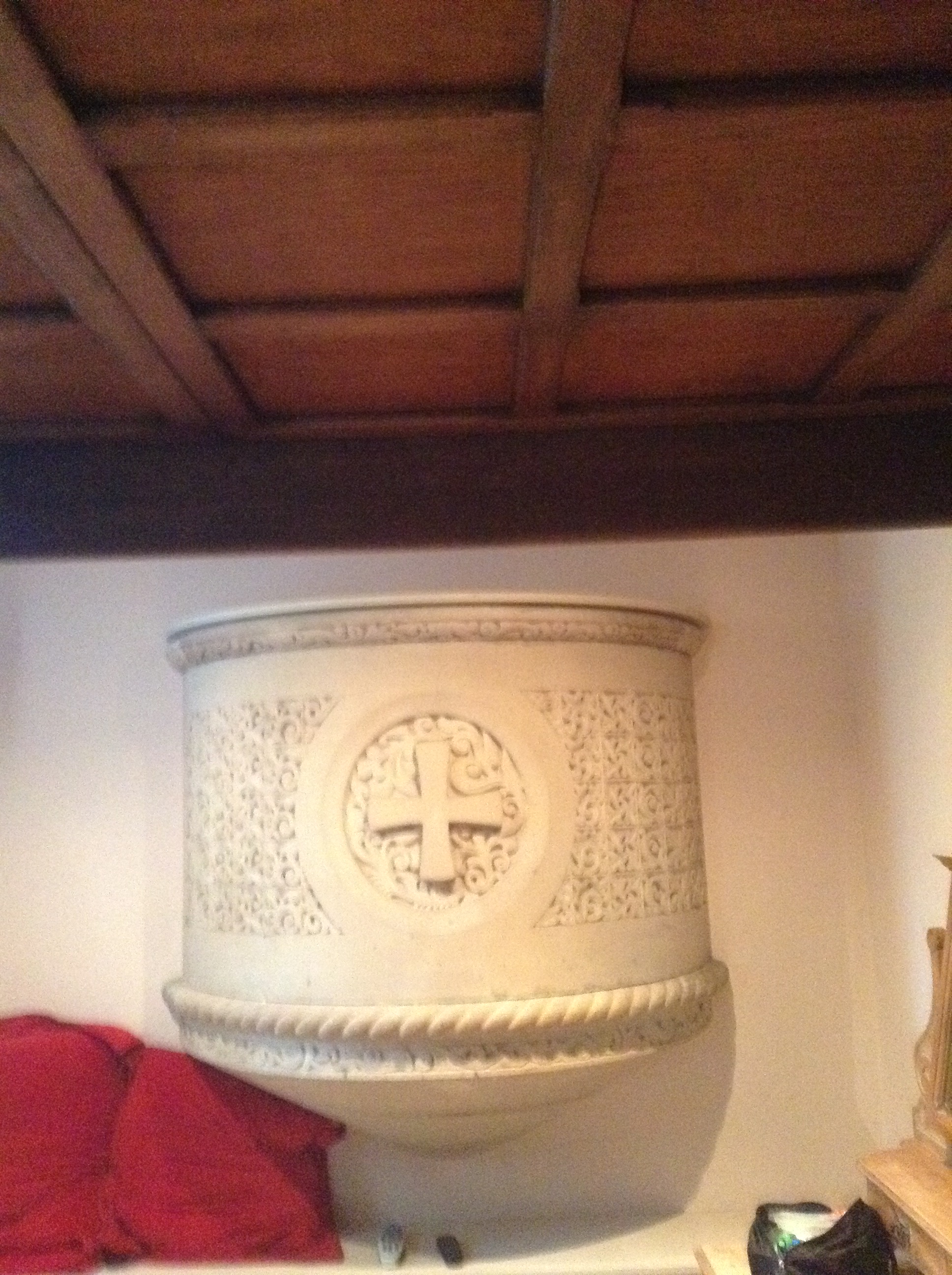 John and I were shown to our room. We had a four poster and a pulpit. Quite random! Also a little disconcerting, and didn’t let you forget you were in church!