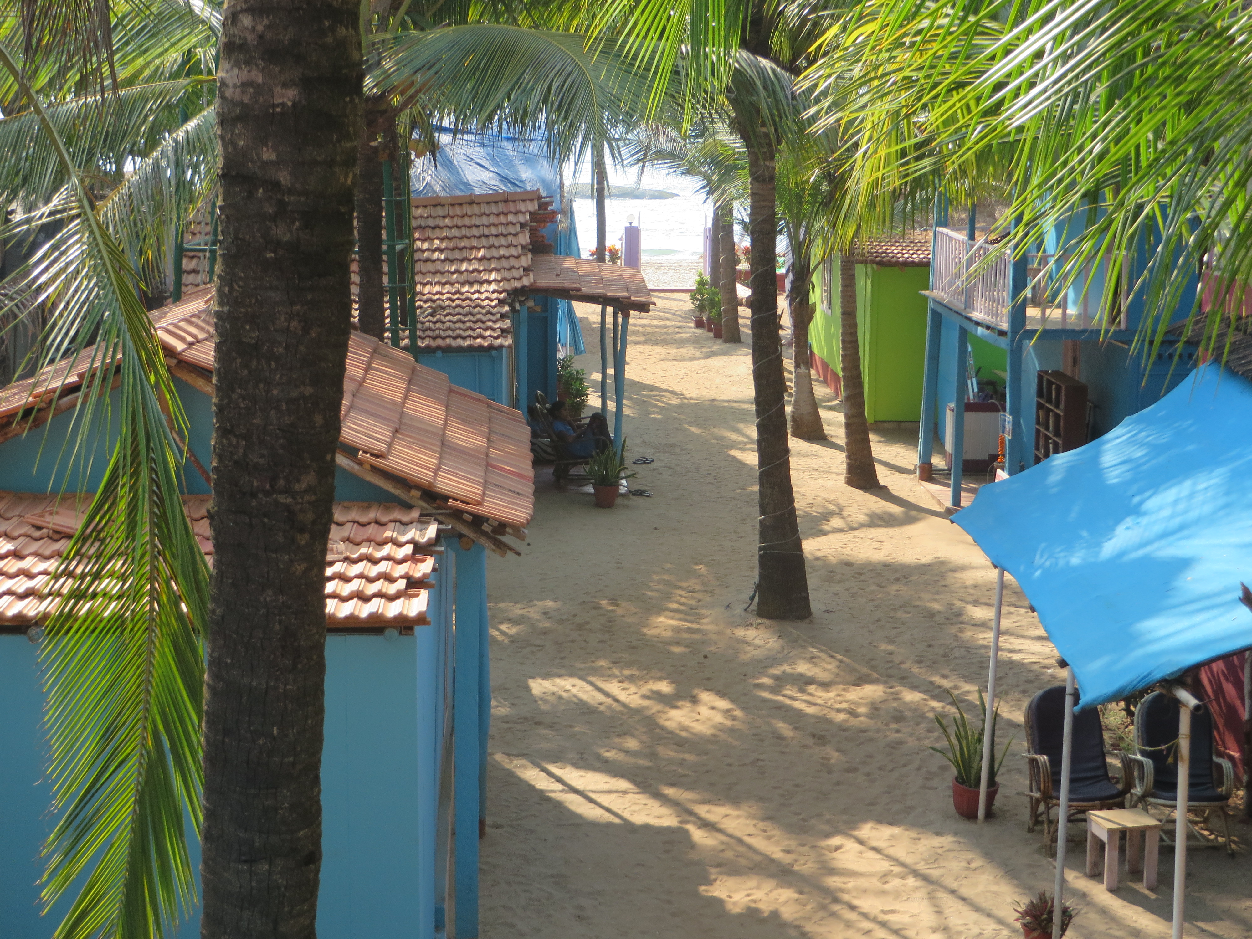 After two weeks here in Benaulim, we were getting restless. So, we packed our little bags and headed south to Agonda. It was fun, like going on holiday! We booked into a charming room high up in the palm trees, and discovered the most beautiful horseshoe beach fringed with coconut palms.