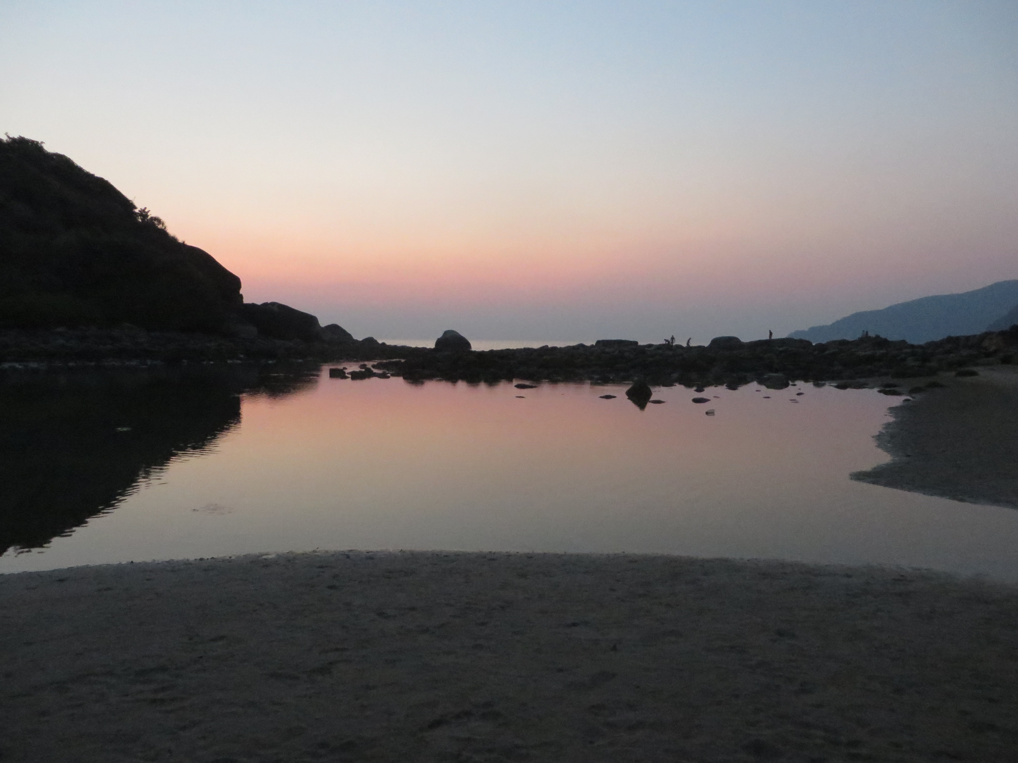 We walked to the end of the crescent bay and watched the sun turn peach and purple and the rocks and palms were just black and ancient and timeless.