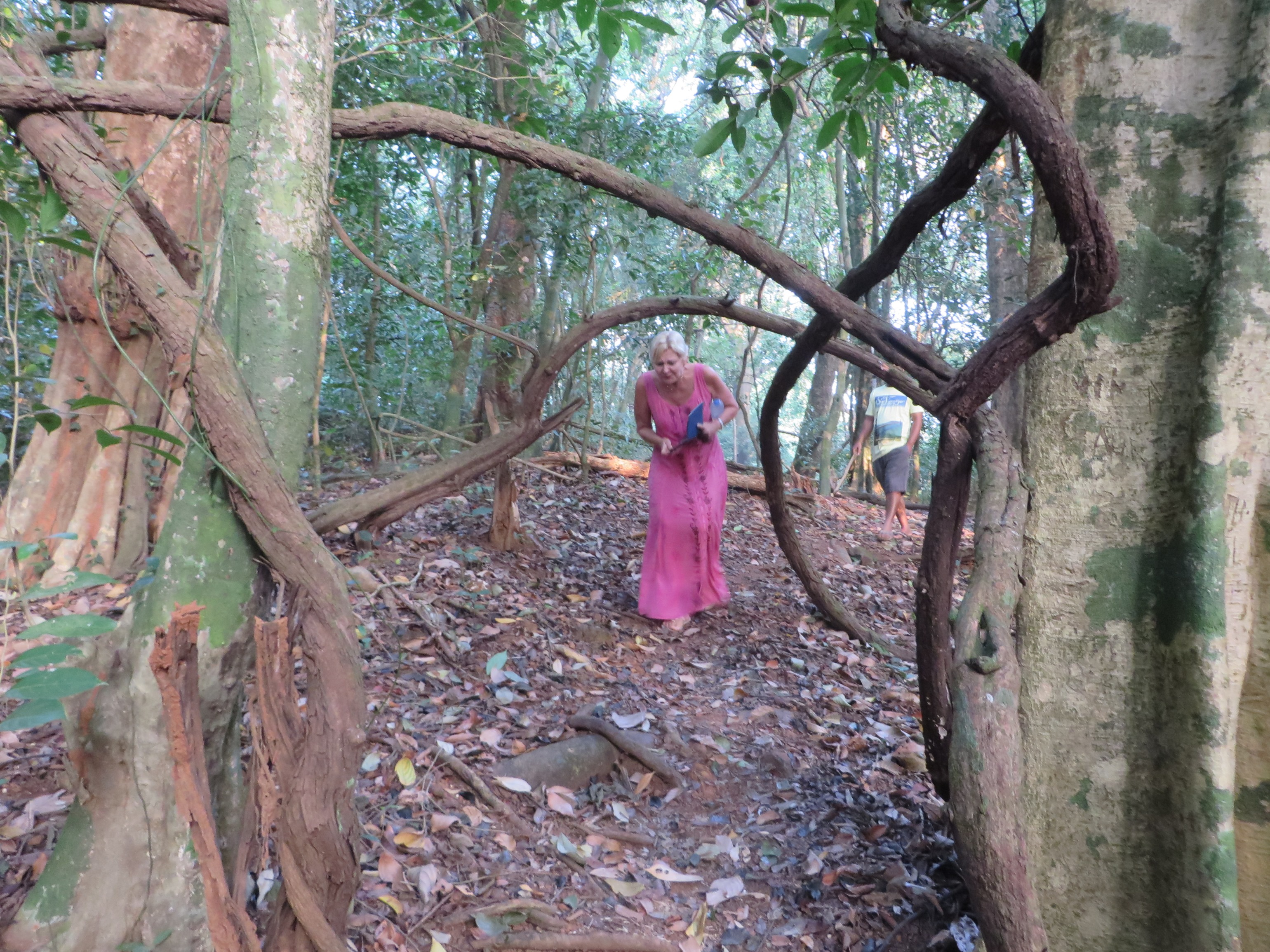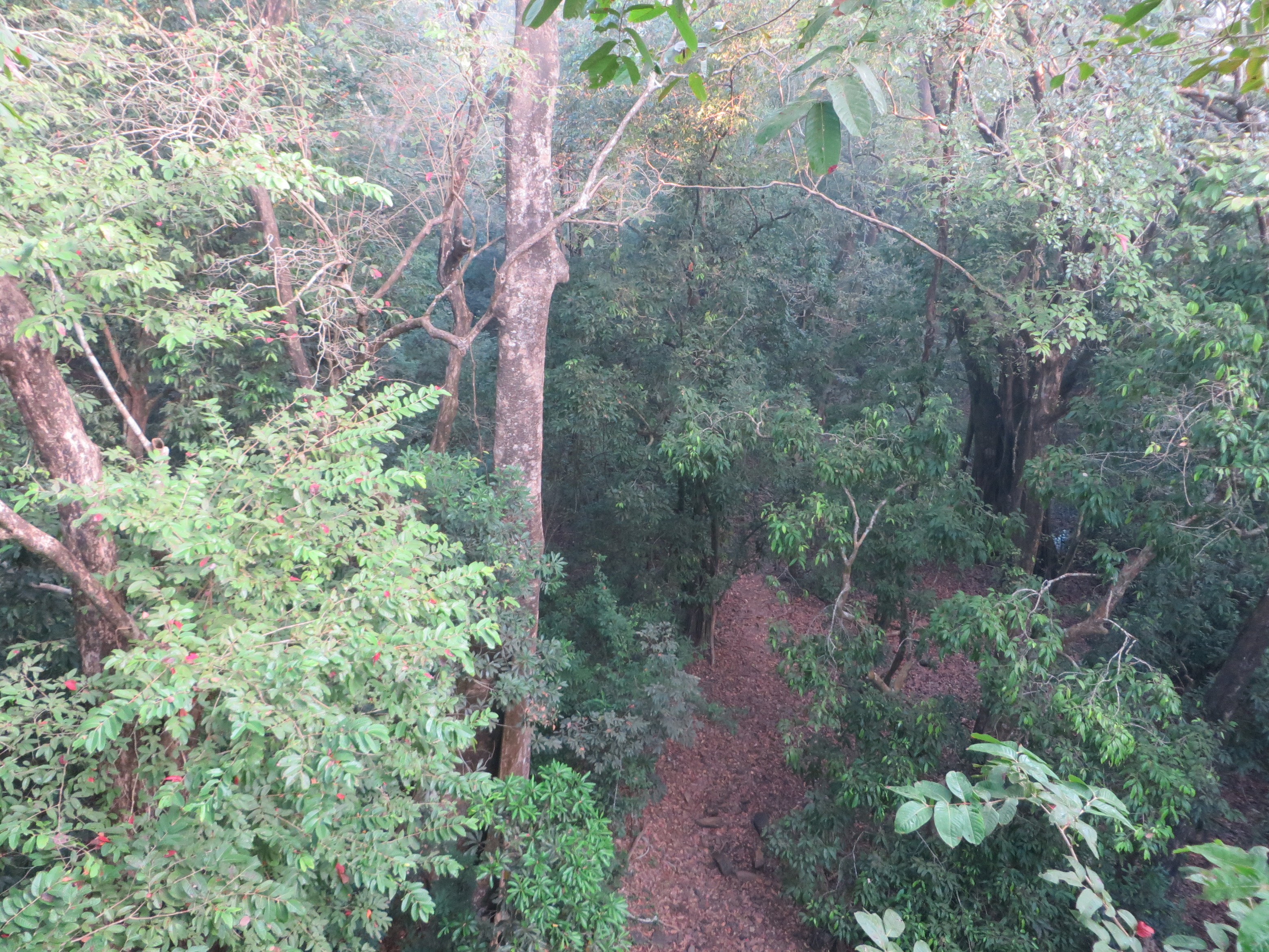 I am sore this morning. My upper arms have had a work out for the first time in about ten years. At dawn yesterday we were driven to the Cotigao Wildlife Sanctuary, about nine km east of Palolem. We arrived just after the dawn with the most disinterested taxi driver in the history of tourism. Anthony’s only contribution to our trip was ‘I don’t know’. He took us deep into the virgin forest, thick with lianas, loud with bird song (‘I don’t know’), and then parked the car. We were ushered on to a trail, and dressed totally inappropriately in a long dress and flip-flops; I soon understood why you should NEVER enter a tropical rainforest in flip-flops.