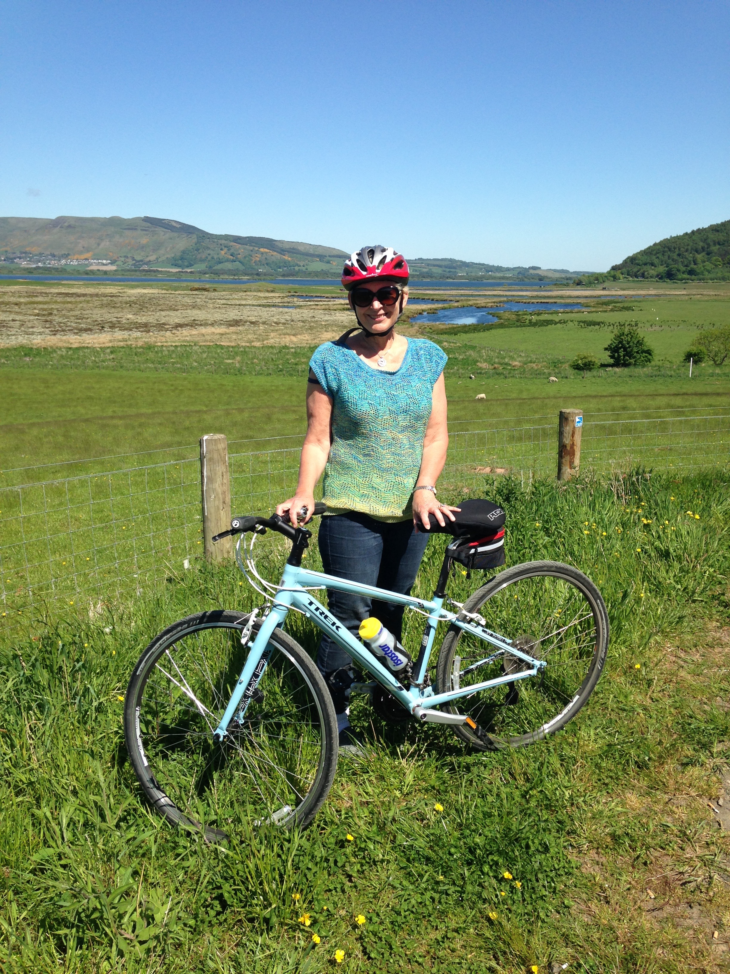 First we cycled round the 22kms, whizzing past the island where Mary, Queen of Scots was imprisoned and then the second time we walked, in full sun and it seemed to take hours. Quite a trudge.