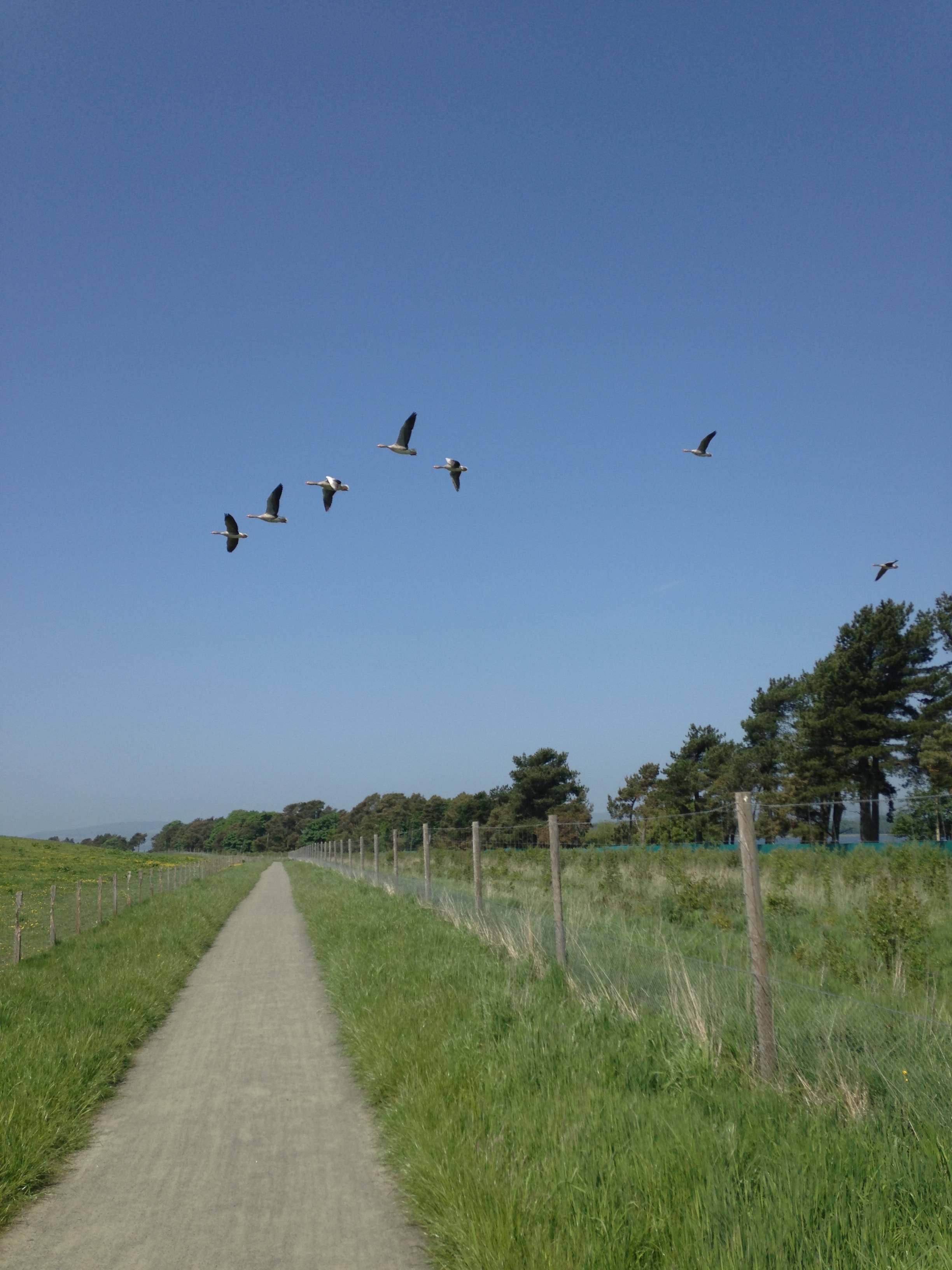 Above are geese going off to a goose jamboree in a field and this is a good example of a deer fence… obviously very tasty!