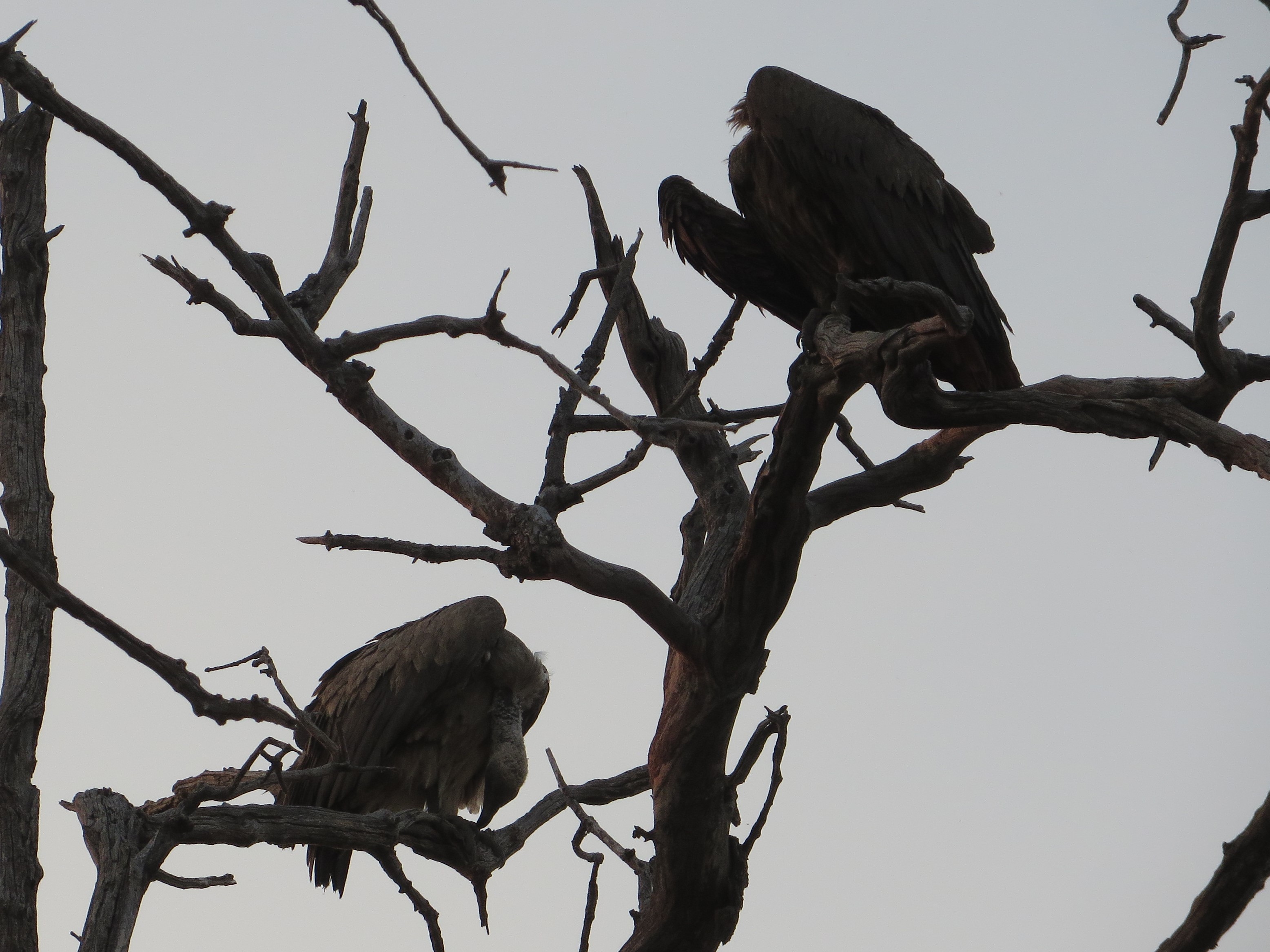 We drove around in search of the lions we had seen earlier but to no avail. The sun was setting, the dead trees were stark against the sky, the vultures were silhouetted on their branches.