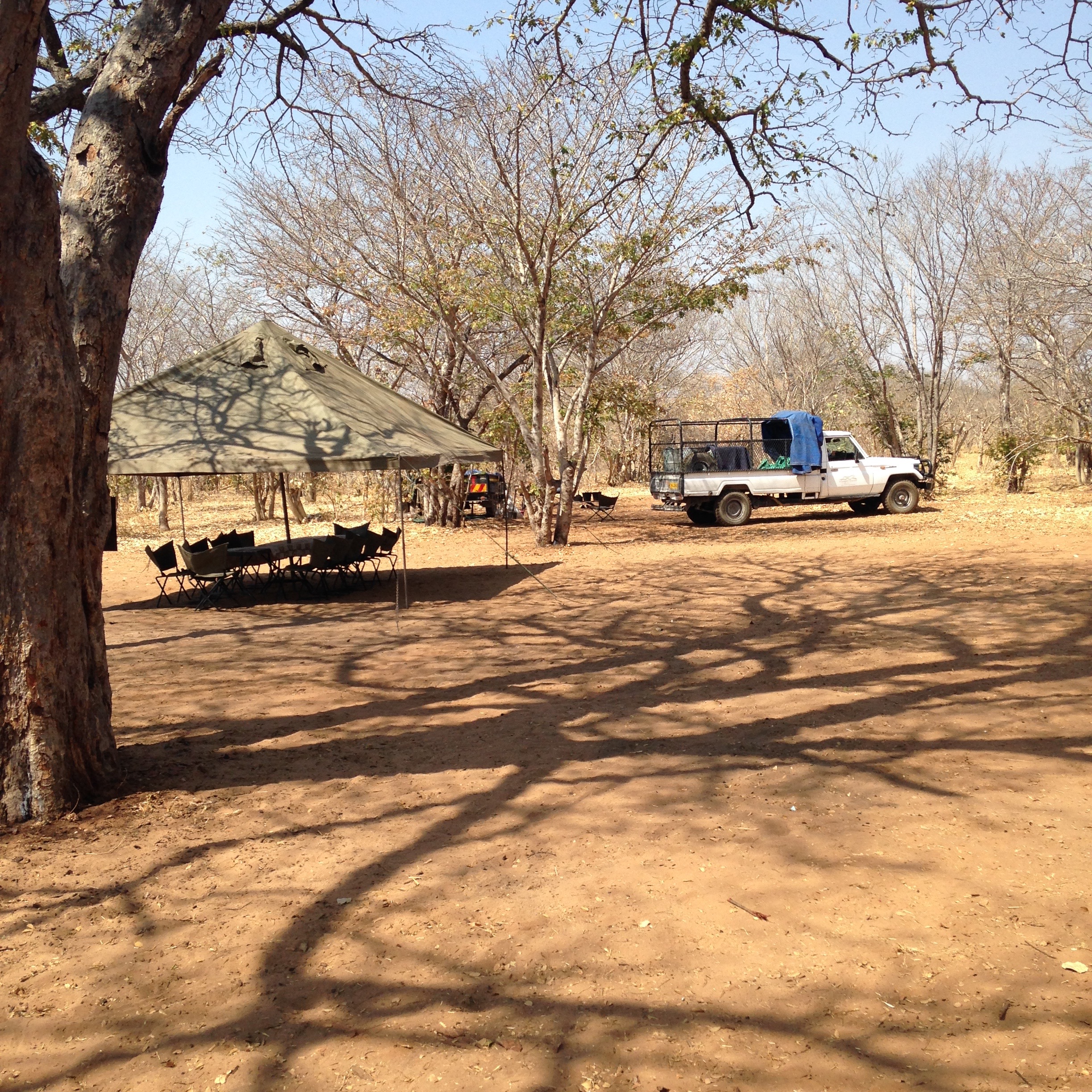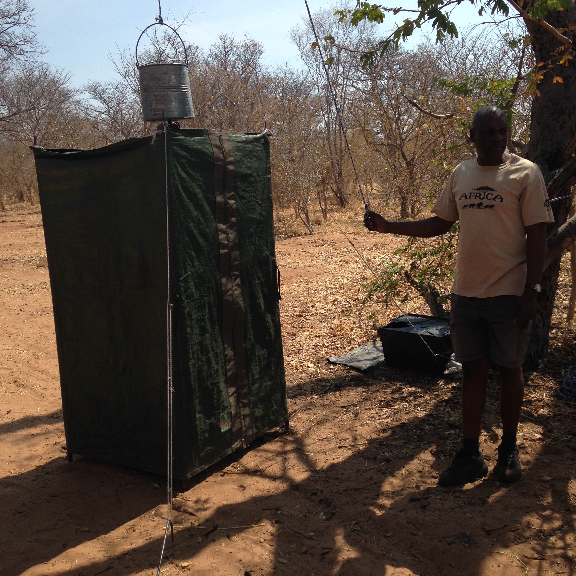 I did not really know what to expect. I think I had ideas of a compound or something with a fence around, a fire and a guard. Not so. We had trees and bushes and Bibi, who was not armed. We also had two camp retainers call Kreetcher and Matcher, who erected the tents and set everything out, and dug the ‘long drop’ toilets (that were not that long to be truthful). This was WILD camping. No barriers between ‘them’ and our camp comprising little tents in a semi circle, a dining table laid out under an awning, two loo tents and two ‘bucket shower’ tents. I hadn’t quite envisaged that it would be so BASIC.