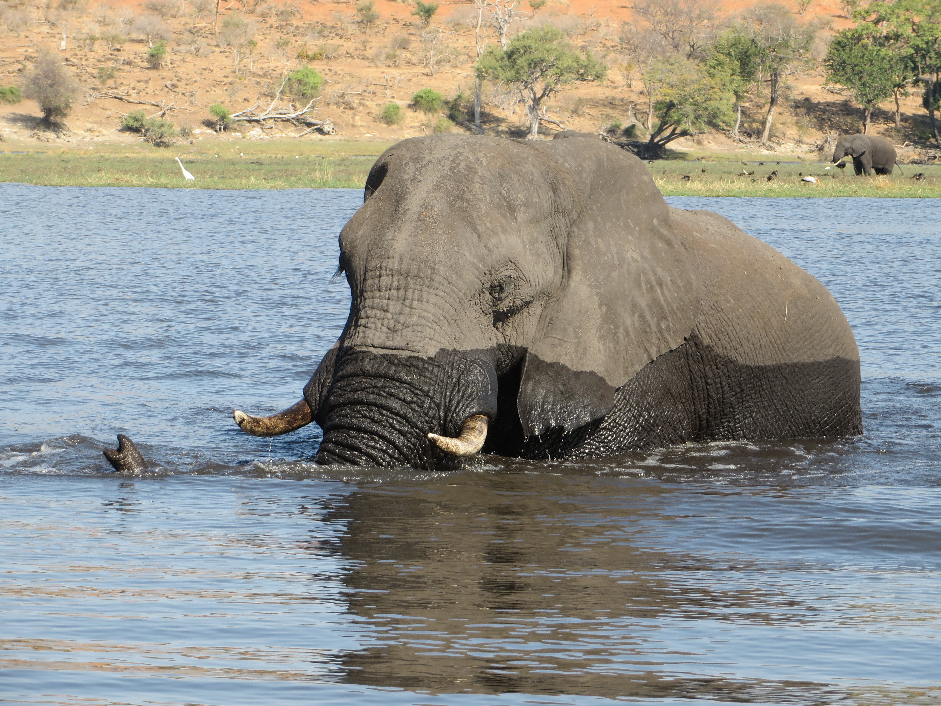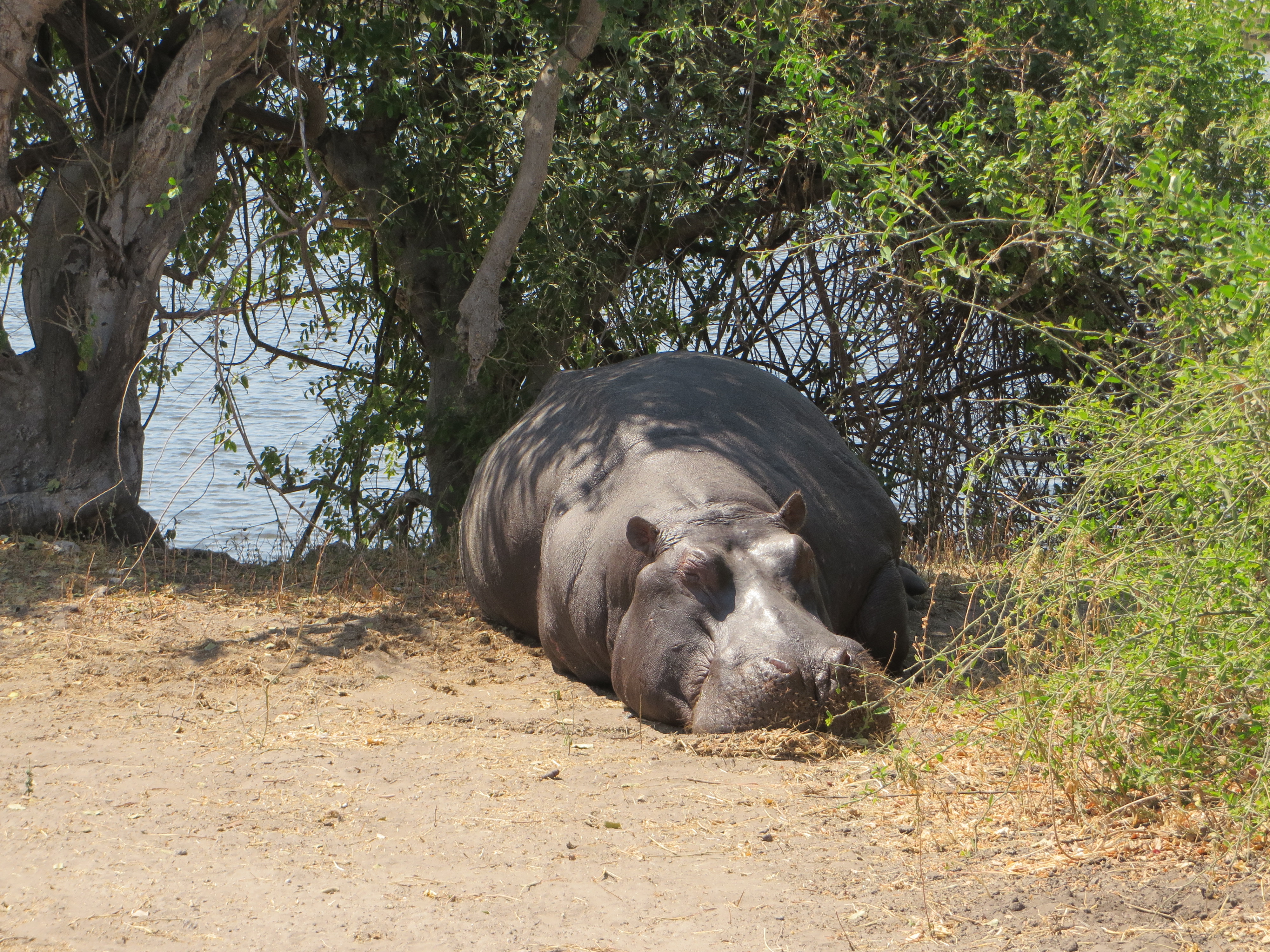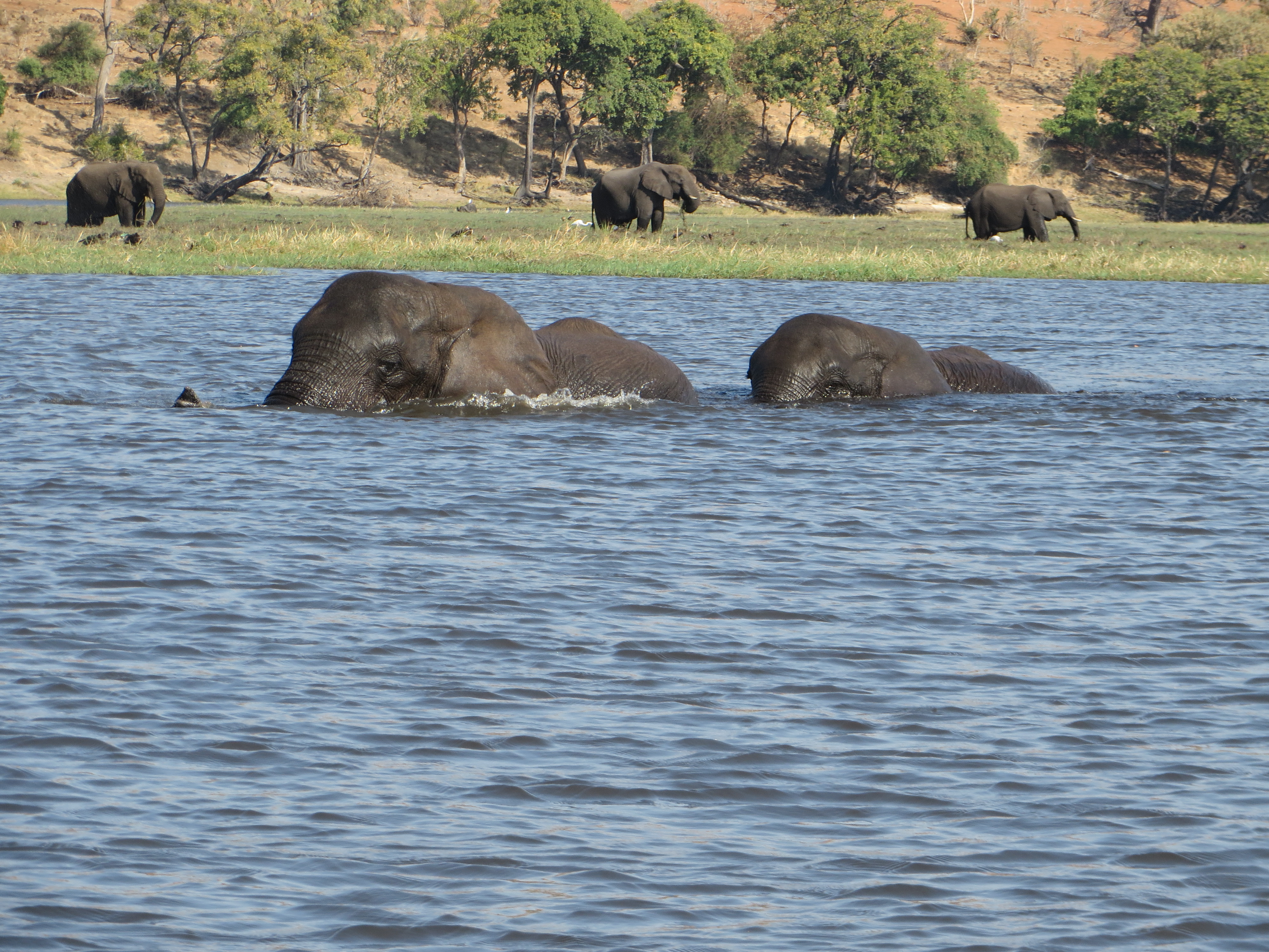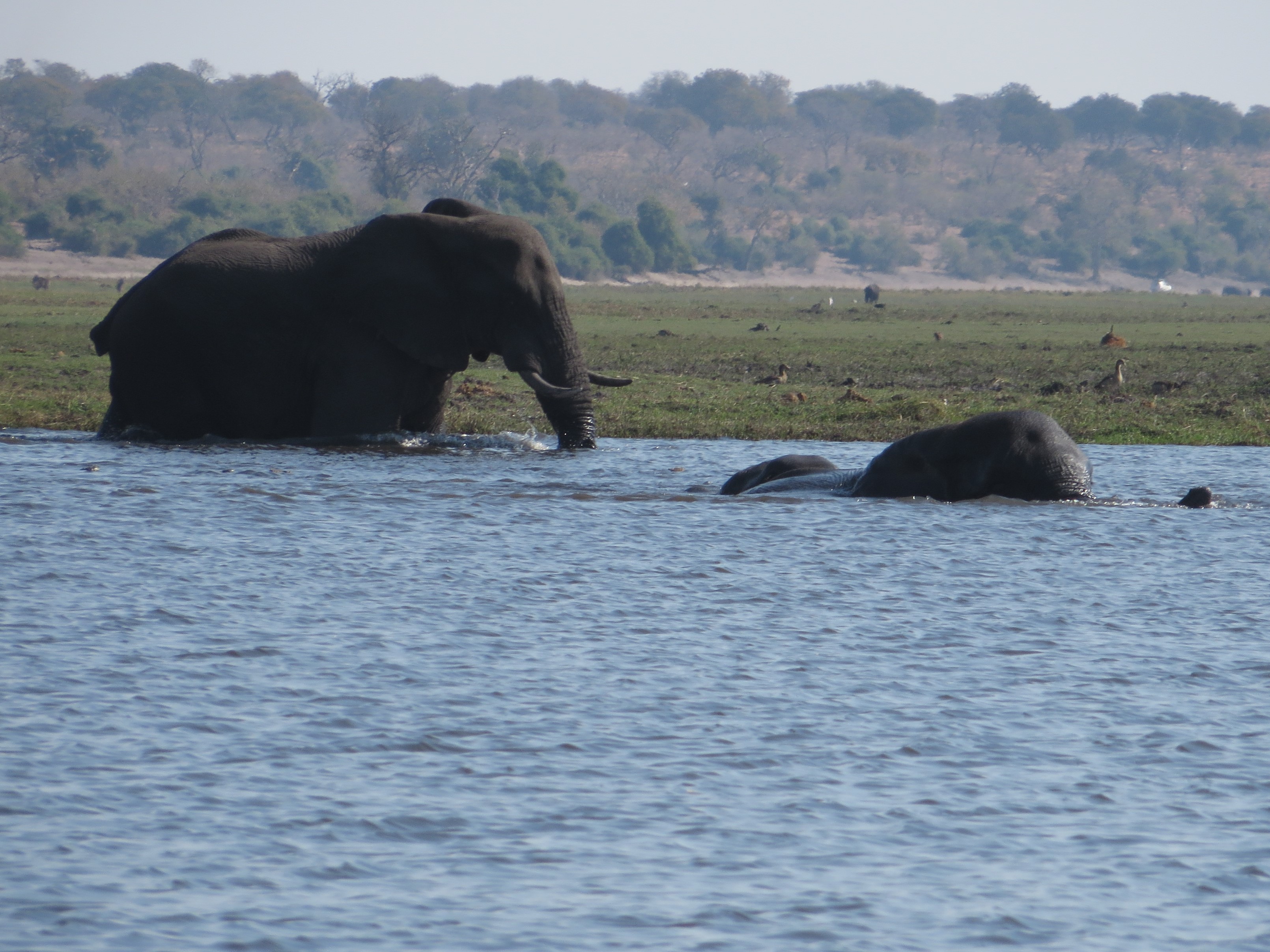 We watched the elephants swim across to the island. They were like giant stepping stones. Not to mention the hippos, flat out like boulders.