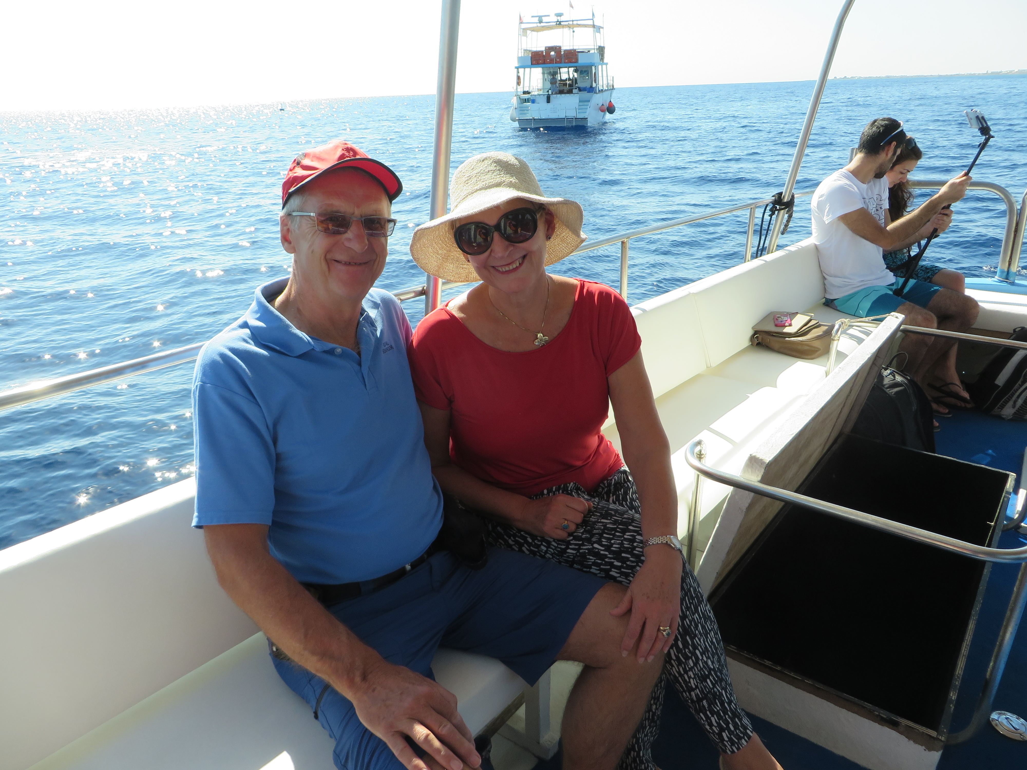So with a hat plonked on my head I joined John on a mini-trip to view a wreck viewed from a glass bottom boat. It went down in the 1970s carrying cars and lorries from Sweden, but is now a hot spot for sports divers and assorted fishes.