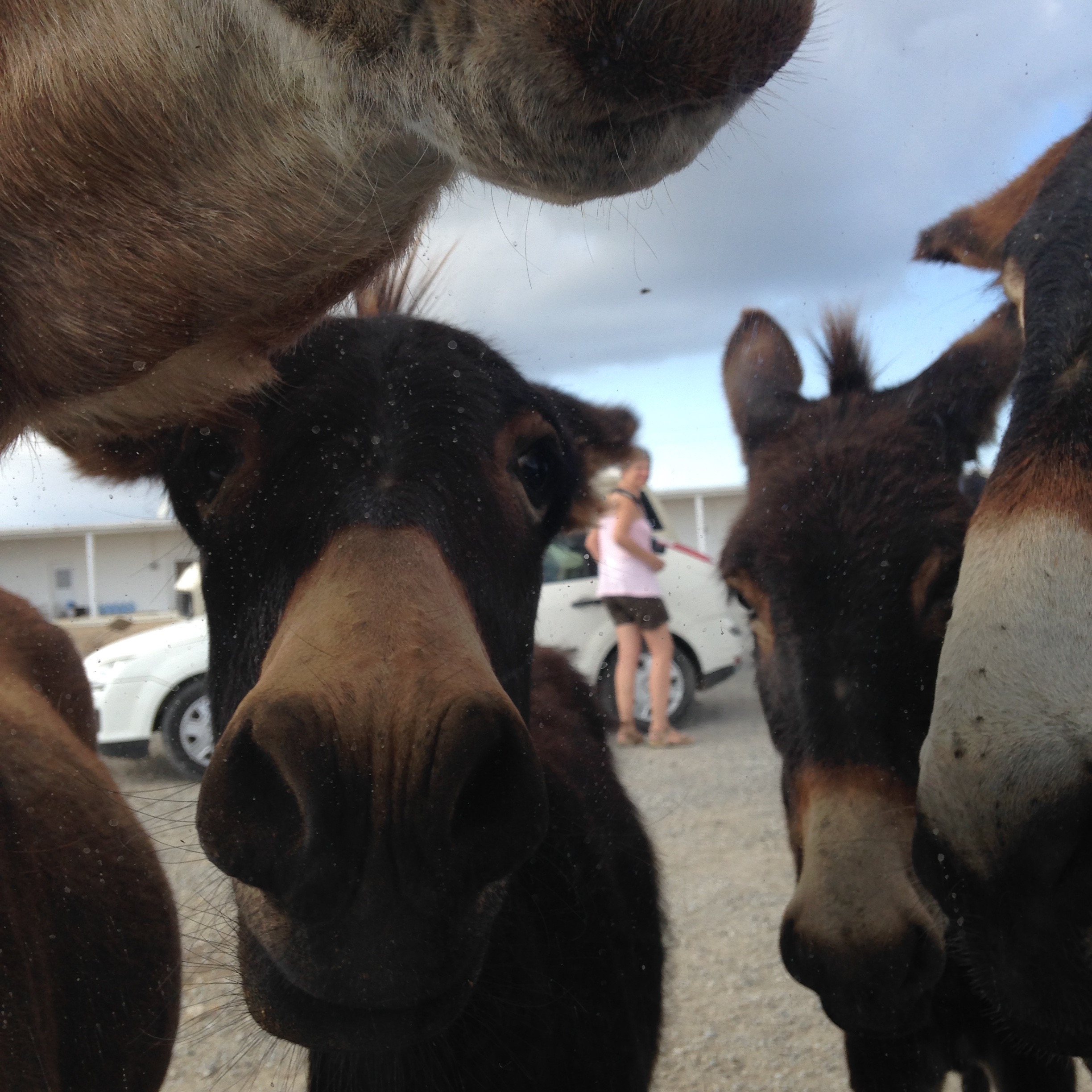 But on Thursday we did see plenty of donkeys, and happily they seemed less neglected than before. They were intent on getting inside the car, and we gave them some leftovers. Their diet must be supplemented by so many weird things they get from tourists. Some guy was feeding them biscuits; I just wish we had remembered and we could have taken some cabbage or carrots or something.