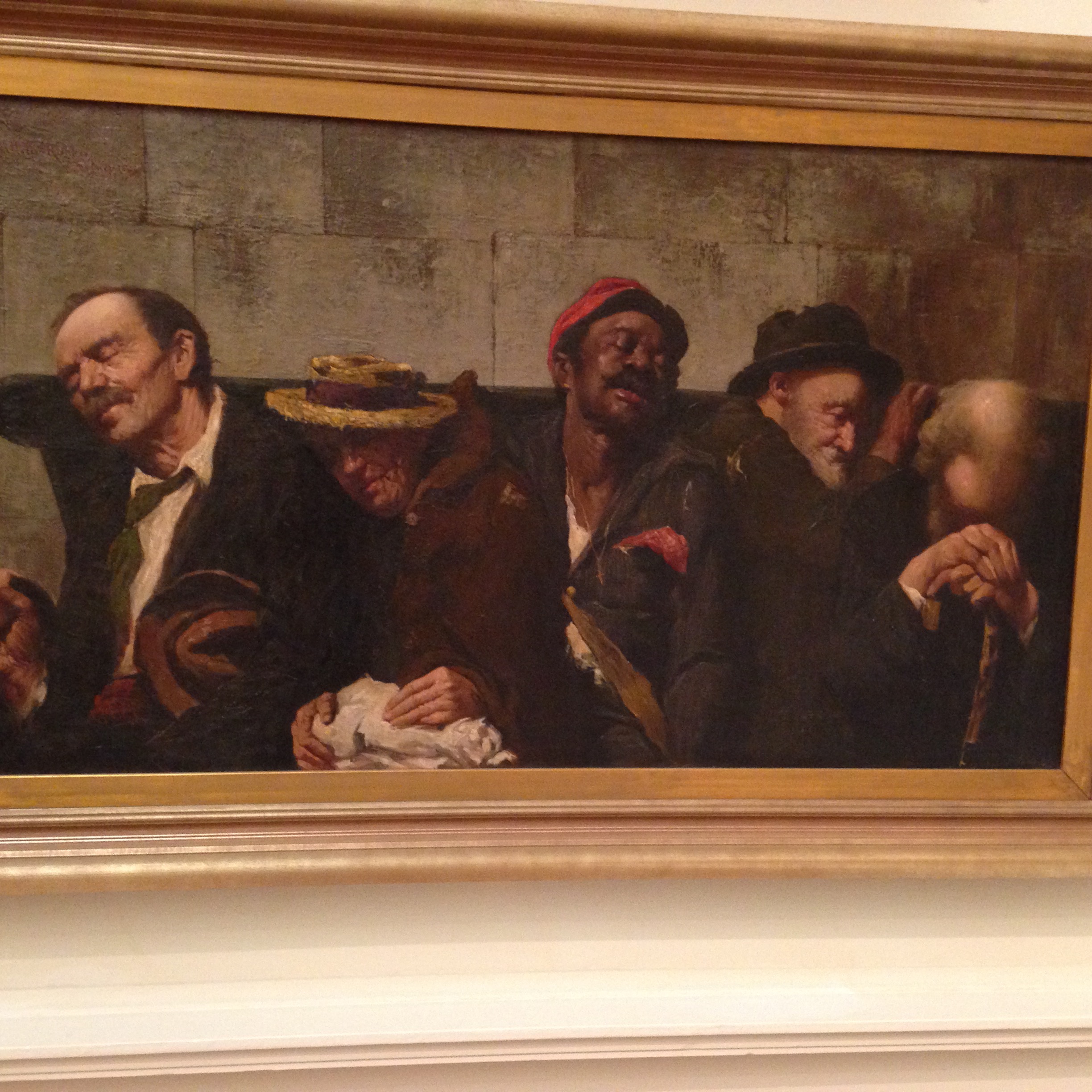 I liked another of five bums on a bench. Its subject was how poverty was a great leveller when it came to finding a place to sleep.