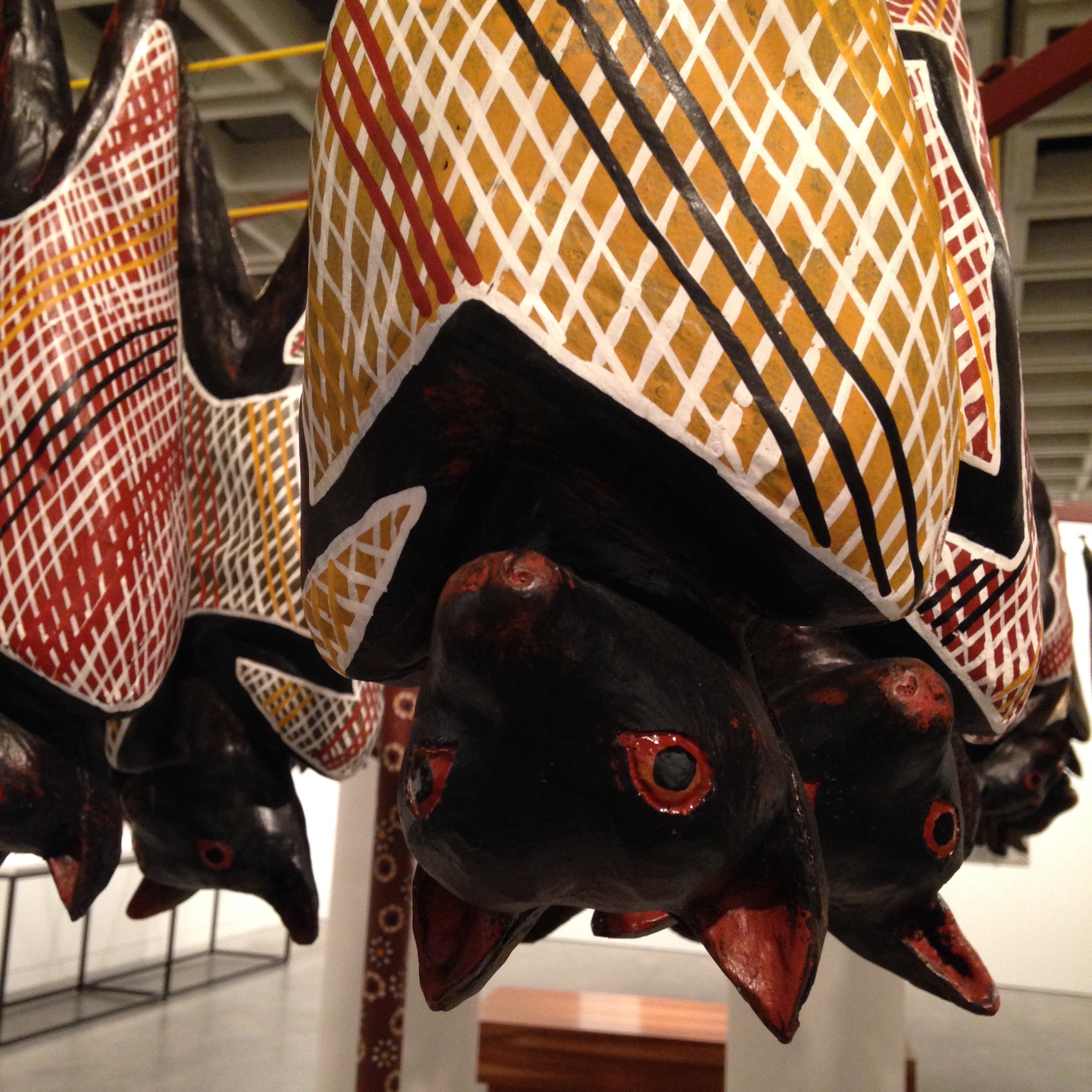 But best of all was the aboriginal sculpture of the fruit bats on a washing line. Each little face different, and quite arresting.