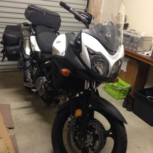 Geoff was Laraine’s support crew and he travelled ahead on his ‘Pearl’, a Suzuki V-strom.