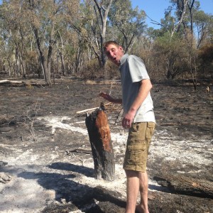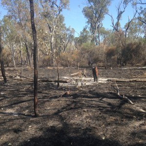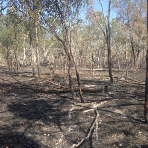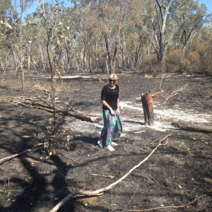 We drove on, leaving the water melon town to its excitements, and came across two live emus having a chat in the centre of the road. The road was beautiful, so good to get off the fast freeways. Smells came into the car and we were virtually alone. We did come across a stretch of blackened bush, the ground still white with ash and still smouldering. We had a look. Flames were still flickering, and I could imagine the aborigines in the days of yore carrying their fire to their next settlement. The trees themselves would soon regenerate, and we drove past others that had suffered and were already sprouting fuzzy green growth.