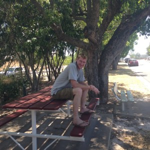 Anyway we ate barramundi and looked at Geoff’s photos and map of Australia, and his 14,575 km route he had taken for his amazing round-the-county adventure, that ended with a sweet love affair. Nice.