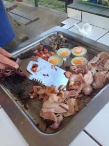 Geoff cooked up breakfast on the barbecue, and announced that ‘You don’t get to go home thin!’ We gobbled it up;