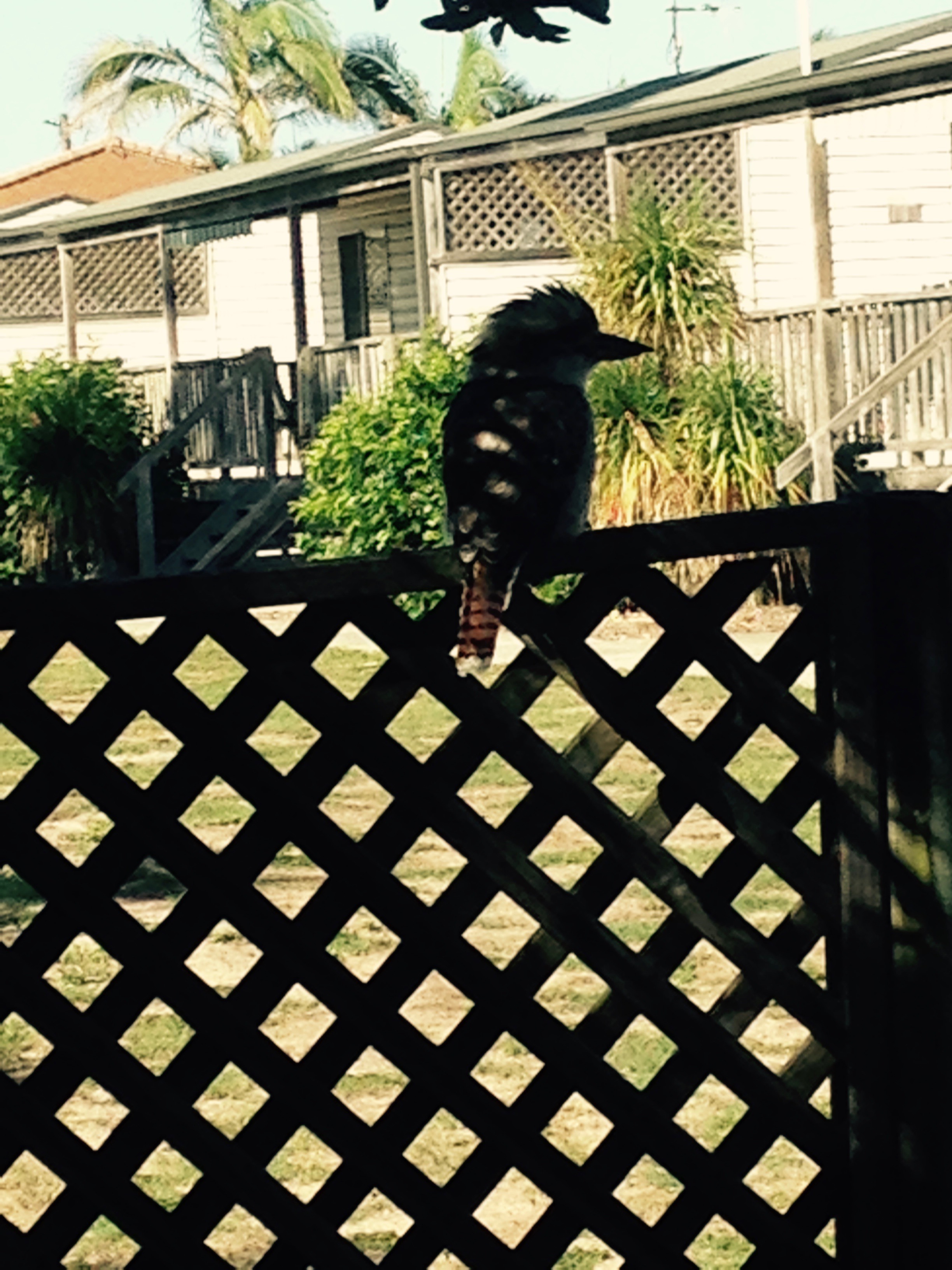 We ate fish, listened to the rush of the surf just below the sand dunes, and Geoff saw the kookaburra swoop down and gobble up some morsel.