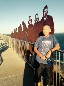 We posed beside the grass trees or as they are known ‘Black Boys’. Amazing plants, they grow only 2m a year and are about 2000 years old. I imagine they are very expensive in Garden Centres.