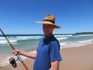 I see the endless sand, the blue sky uncluttered by any cloud, I see two dolphins synchronising their dives and a rainbow lorikeet too lazy to move as I approached. His beak was embedded deep into a bottle brush flower. It was exquisite. After nearly two thousand miles, we fished, we walked, and drank fizzy wine and Nick slept and played on Geoff’s motor bike.