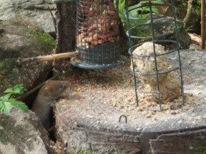Some people have the eye and the ear, and a fast lens to record. We did see, on the shores of Loch Lochy, some attempts by bird lovers to create little feeding stations for birds, and John was lucky to snap a tiny little mouse helping himself to breakfast.