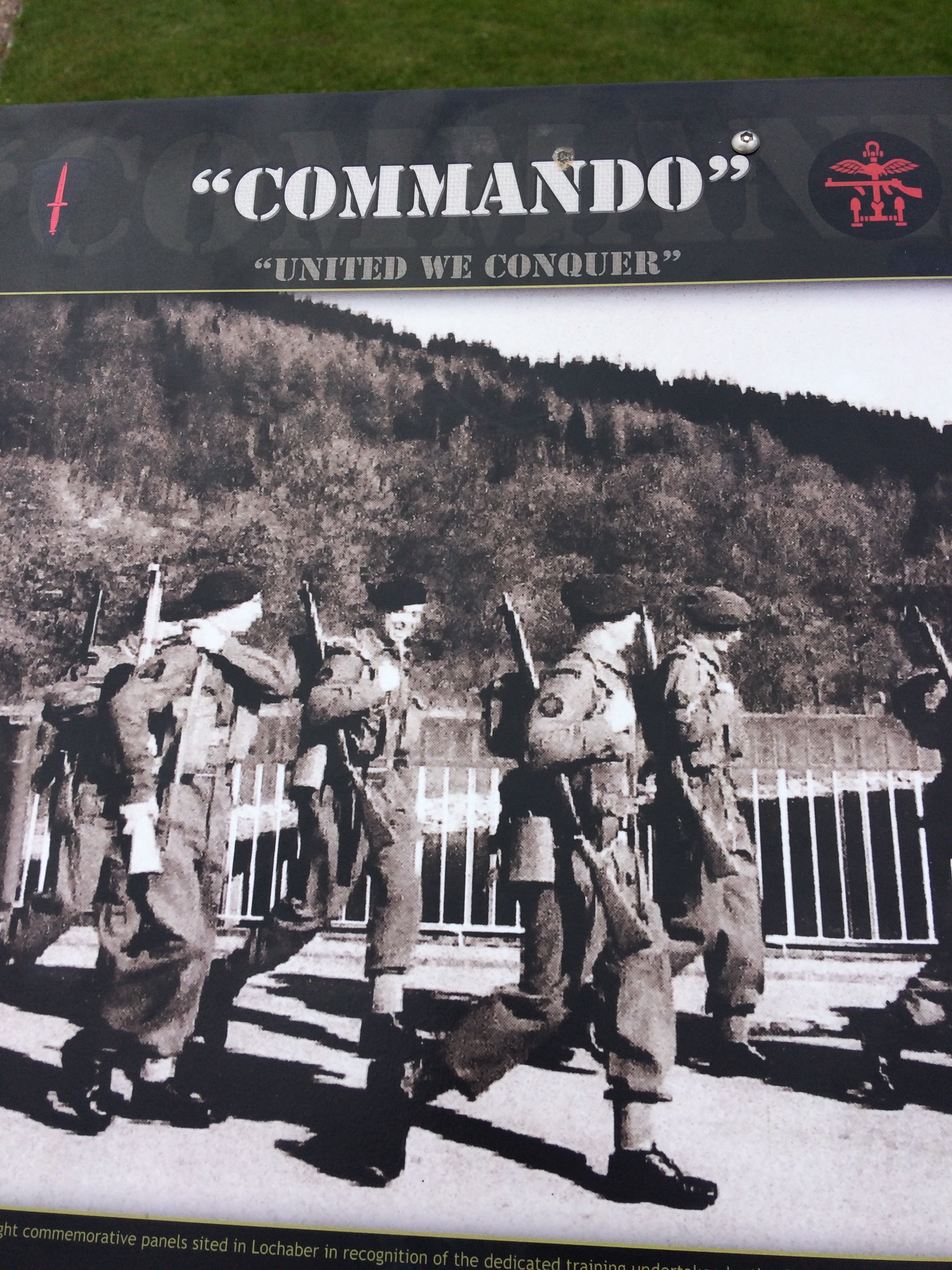 It was here that the new recruits met to start their Commando training. The land was wild, the Cameron house at Achnacarry was made over to them, and the young lads no doubt have their own memories of weeks spent climbing and crawling in ditches and turning into human fighting machines. One lad remembers: “Past Spean Bridge Hotel, through the village to the bridge and over the river in pouring rain and on we marched until our boots drummed on the bridge over the Caledonian Canal with the pipe and drums playing. Then up a back-bending, stamina sapping incline. We climbed so much I began to wonder if the hills in this part of the country went up on both sides.”