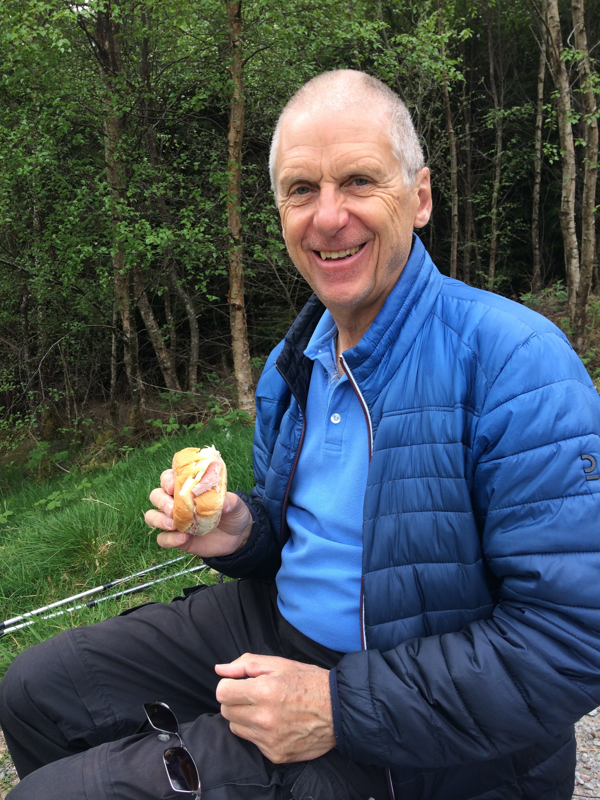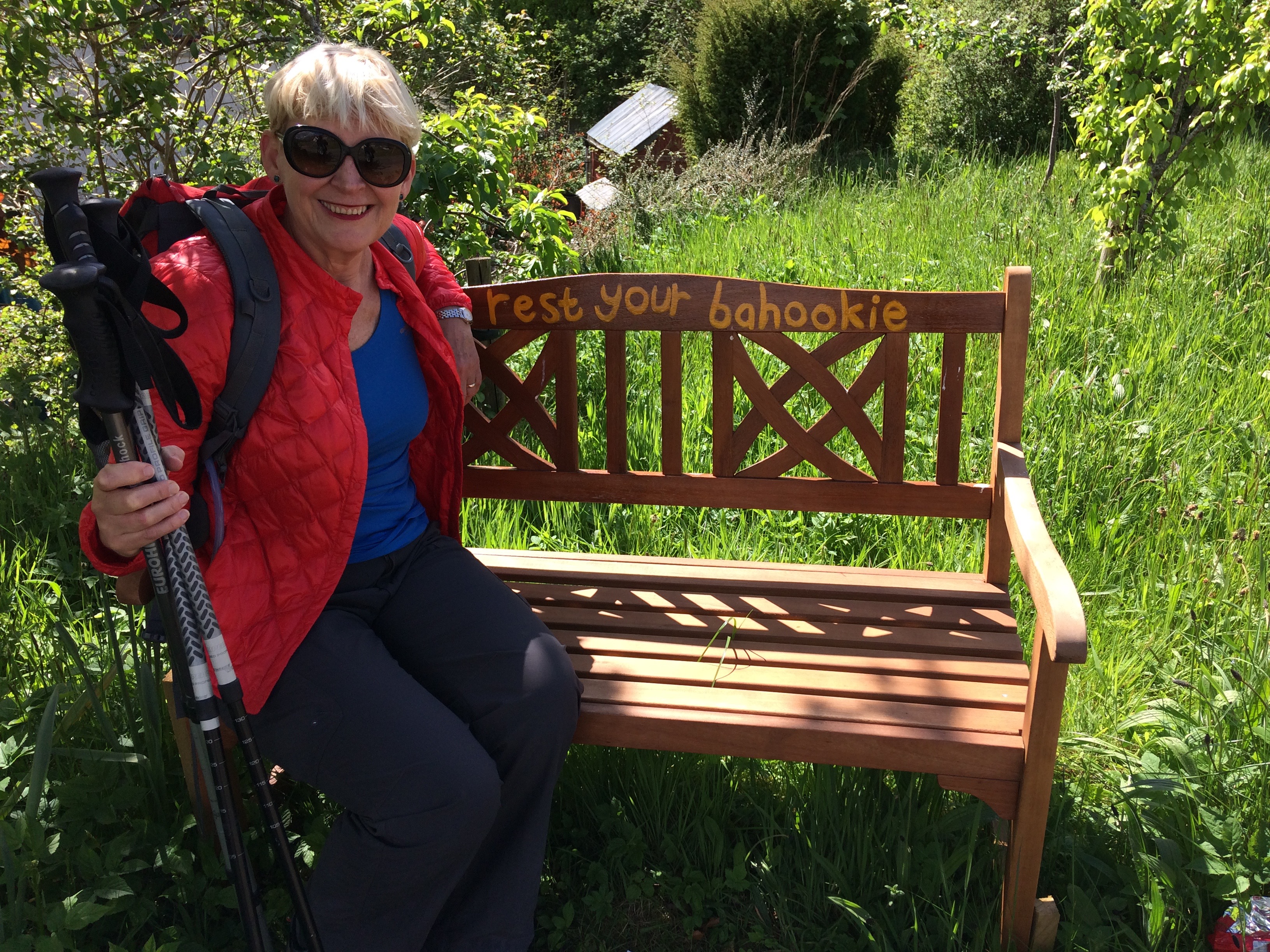 We crossed a troll bridge, and posed in a circle made from sticks and climbed a steep ascent. I was idly thinking of what my famous last words might be as I puffed up the hill, when I was shocked to see John break into a jog. He was quite proud of himself. We both had a sit down at the top.