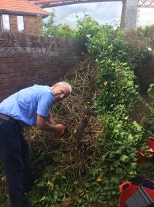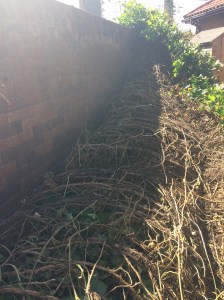 It’s been a week of rain and politics, and disasters nationally and domestically. Our entrenched ivy that grew thick on our back wall was overcome by the heavy rainfall and fell off most dramatically. It came off in one whole piece, and it took the saw to finally dislodge it from the roots.