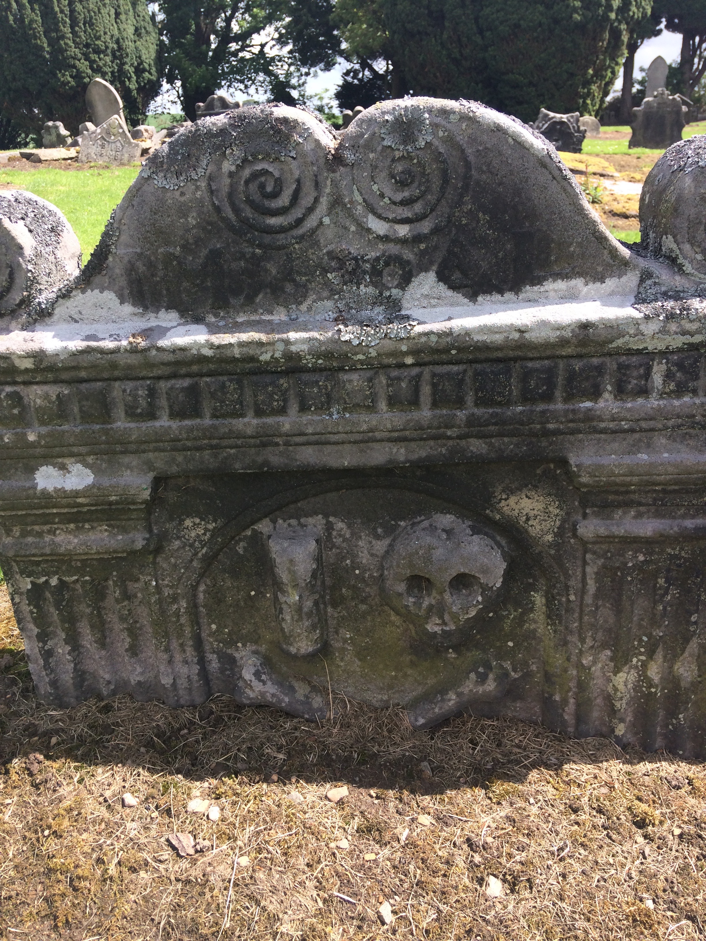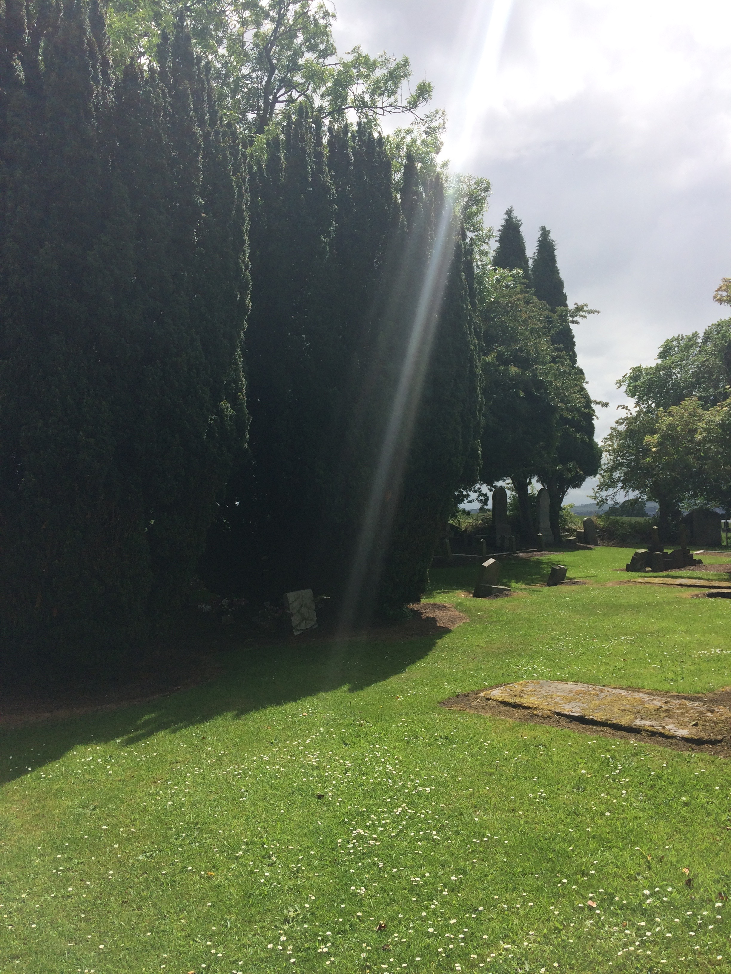 We walked up through the village and came to the ancient graveyard, full of skulls and cross bones, and giant yews.