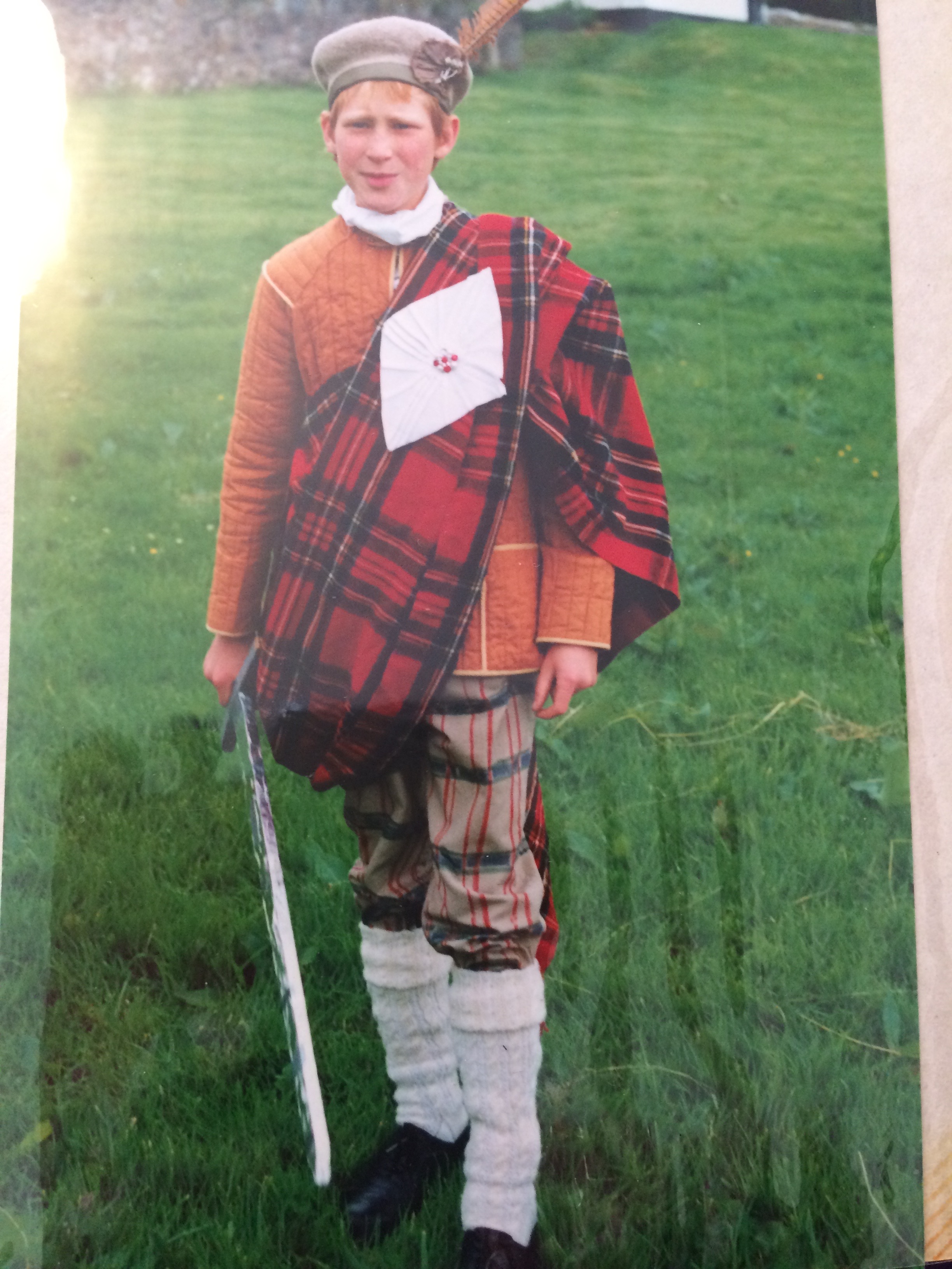 But best of all I remember his pageants. He recreated the story of Bonny Prince Charlie using the children from the primary schools and all the local people that he could coerce into his production. Here is my son Nick, as the bonny prince.