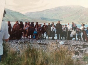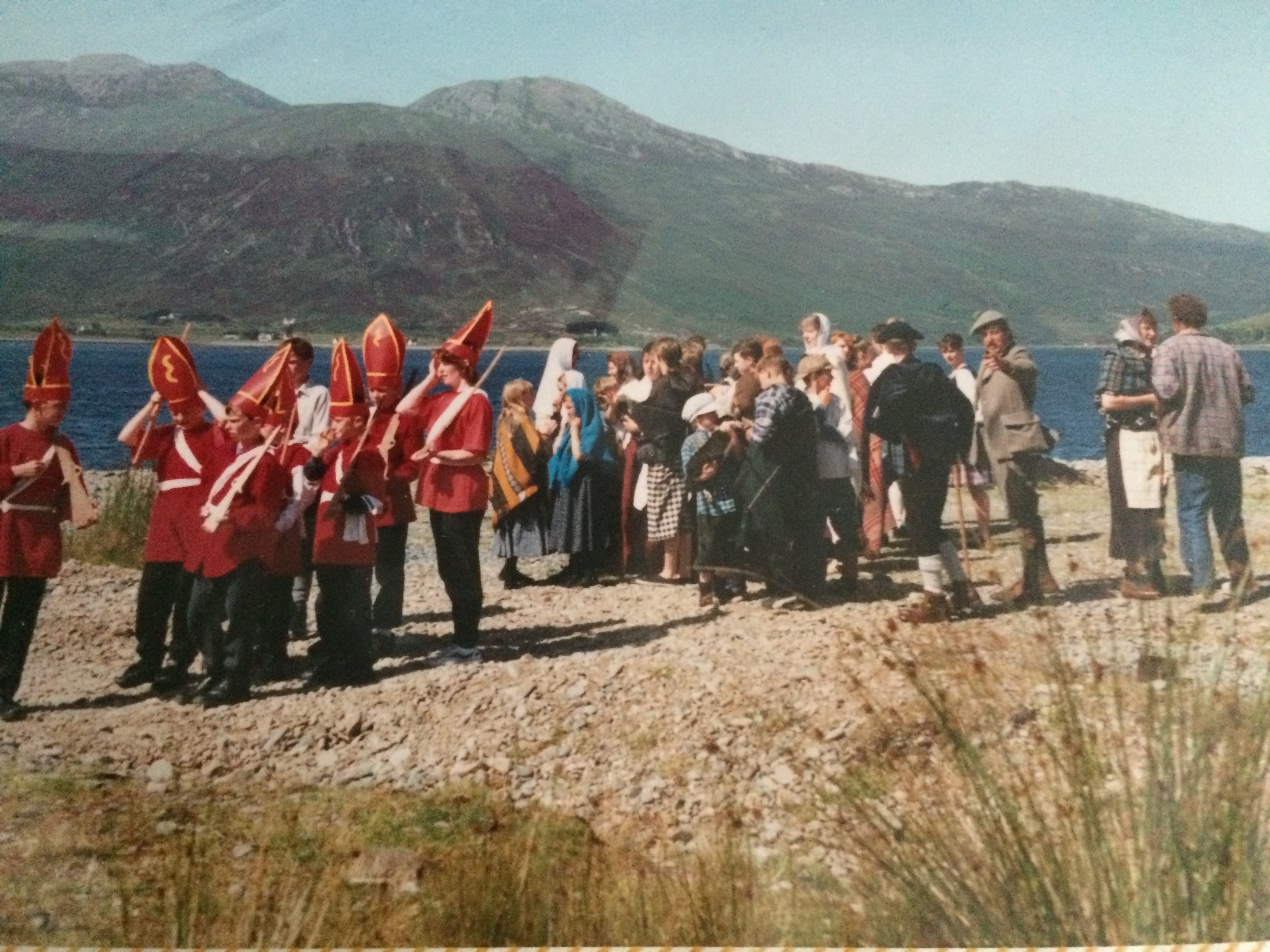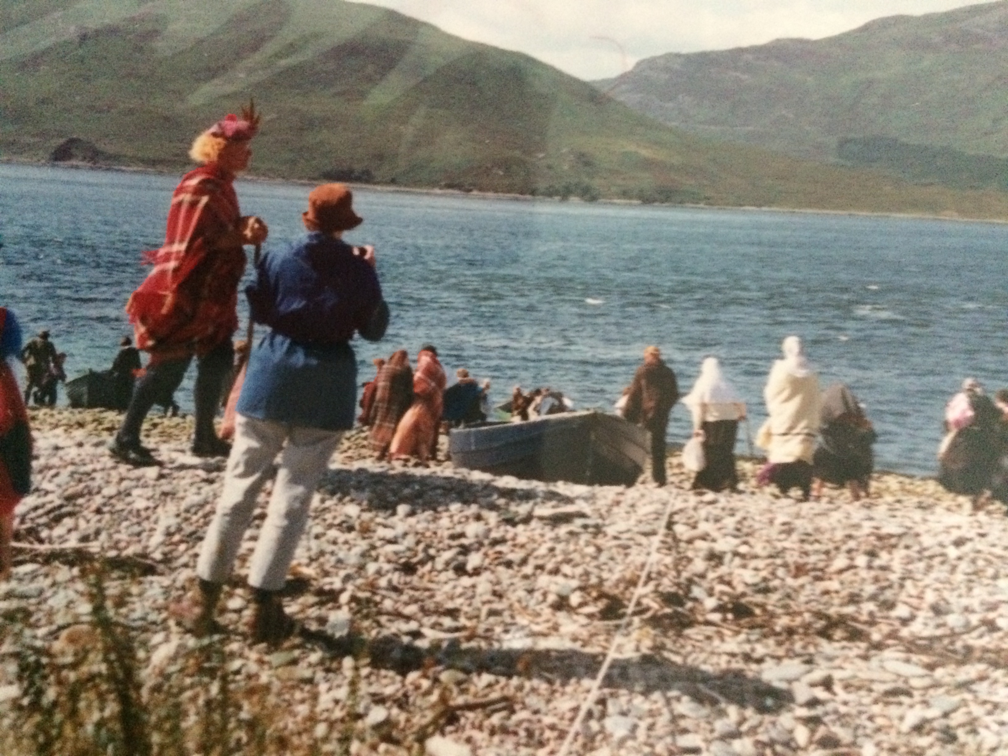 After that roaring success he turned his hand to the Highland Clearances. Films and photographs of the pageant were sent to Glenelg in Canada. It was powerful, and this time more adults were involved. I can still see Calum Ian standing on the shore, leading all the people in a psalm, as they do in the Free Church, his voice strong and sonorous. Apart from his voice and the throng of the people beside him joining in, was the sploshing sound of the oars.