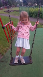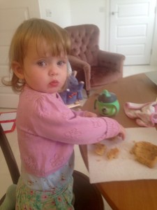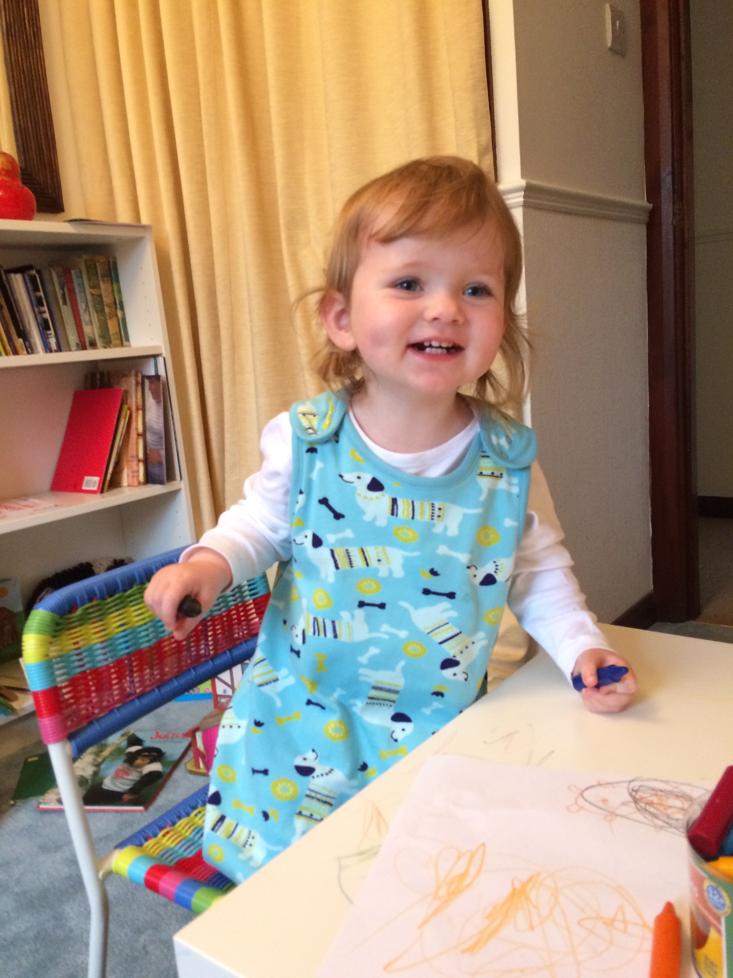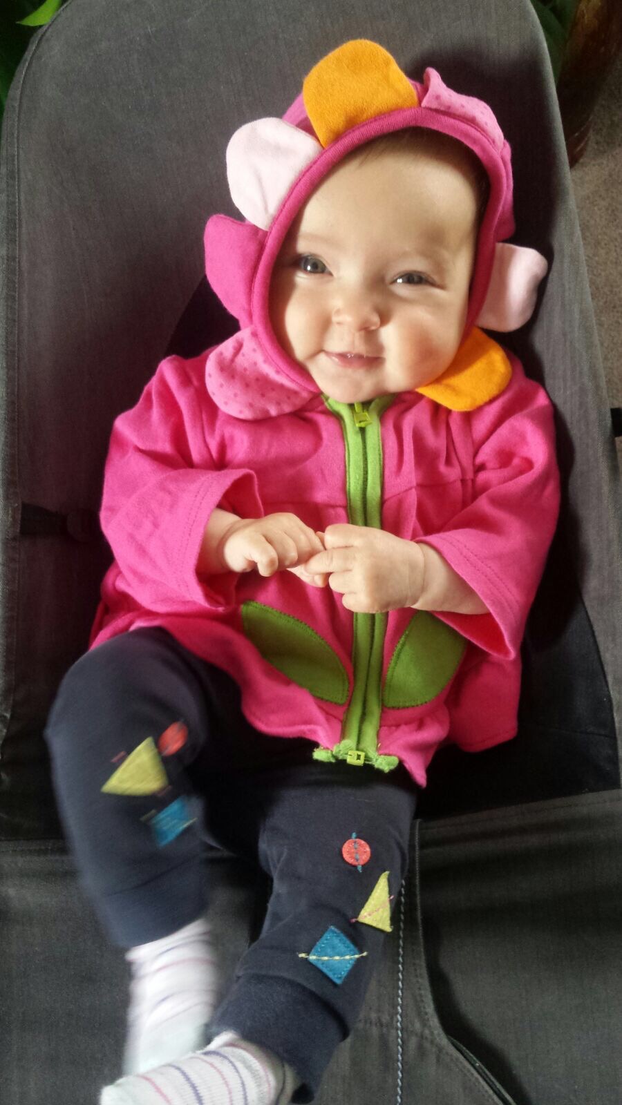 Hazel is just happy to smile, and survives her camping weekends wrapped up in a blanket as her mum and dad wrestle with putting up the tent.