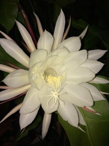 Finally – some shots of the King Wa, as we knew it in Malaysia. We did go to the Botanic Garden and an expert gave us its Latin name. It is Rhipsalis mesembryanthoides and originates in Brazil. It has done us proud, producing 14 flowers and there are three more buds ready to open any night now. The smell is AMAZING. If I was a moth I would just throw myself at it, with careless abandon, and die in ecstasy!