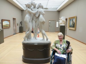 I was able to borrow a wheelchair and the first room we visited seemed a little ironic, it was full of Degas’ statues of dancers in all sorts of impossible positions. I looked down at the boot and sighed.