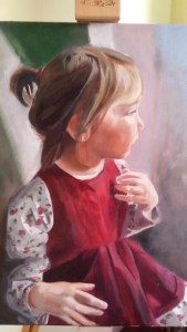 Bonnie seems to love her nursery school, and Hazel can roll around the floor and is going to win the ‘Miss Smile a Lot’ competition. Here is a portrait Natasha painted of Bonnie.