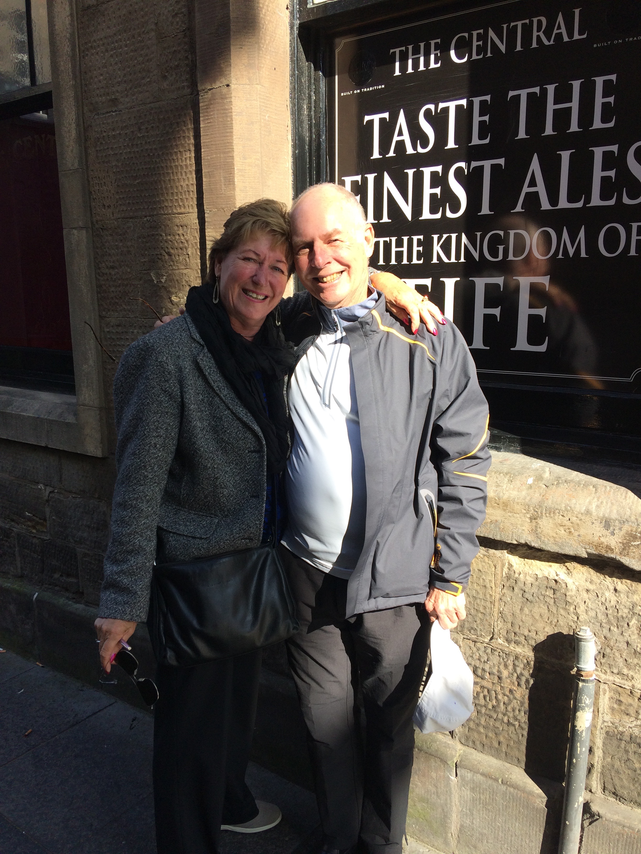 Then we had a visit from Kelly and Bob. We have no history but they are Canadian friends of a friend and they were seeing as much of Scotland as possible, and so we took them to St Andrews and posed by the R&A Golf course and they were quite taken with the old town. Nice to spend time with and now we are back to ‘auld claes and porridge!’
