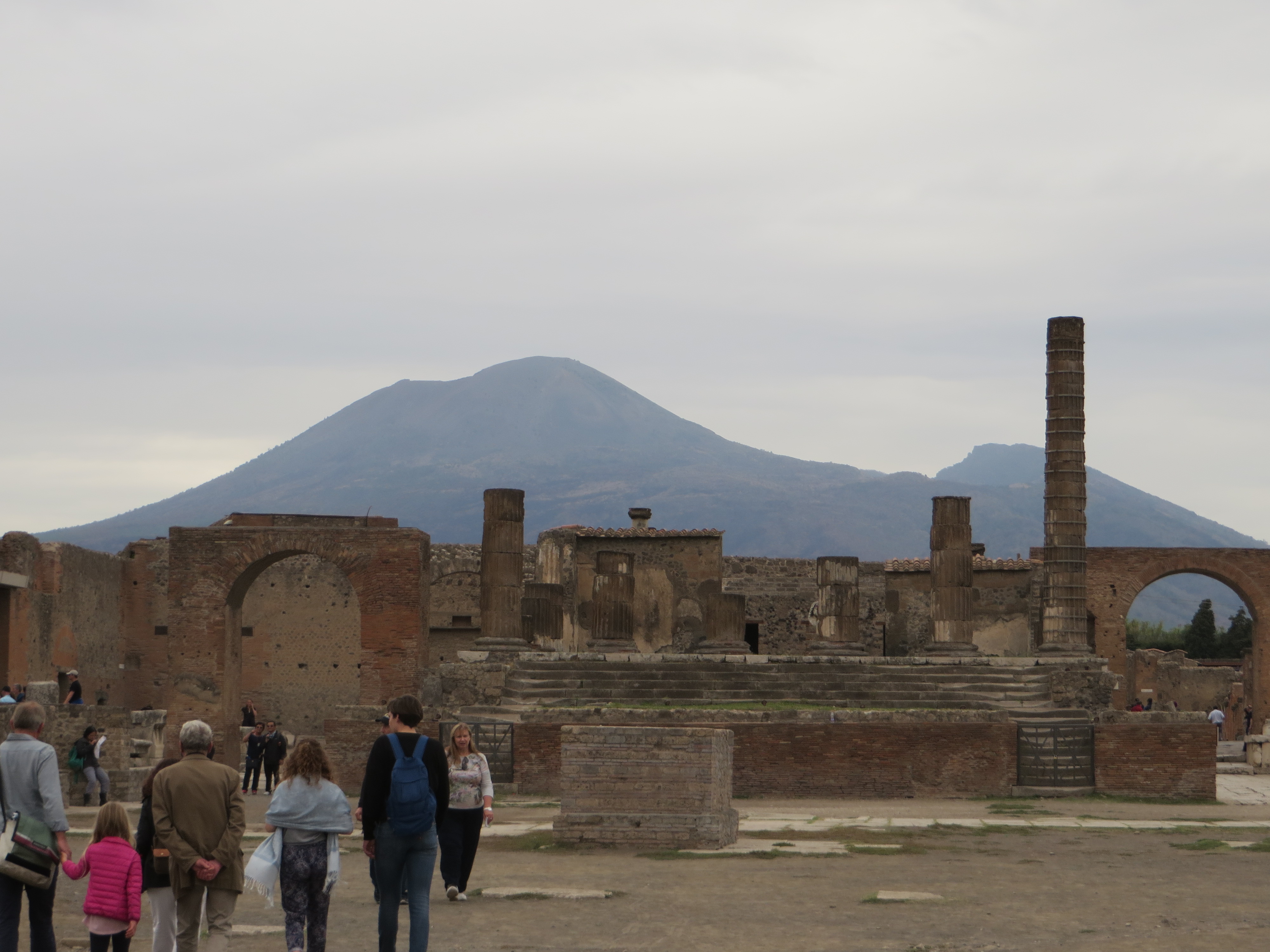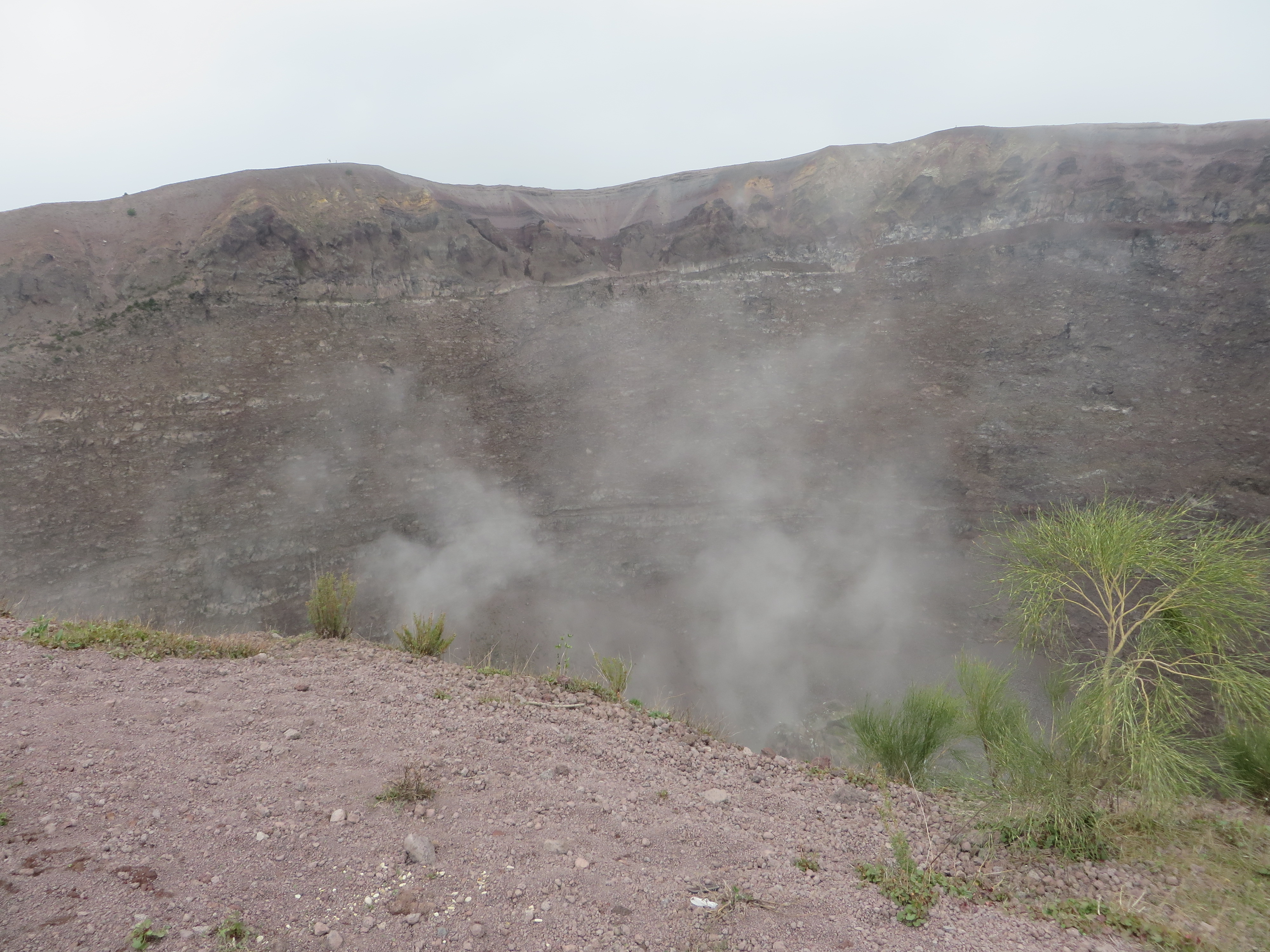 And of course we had to climb Vesuvius and visit Pompeii. The hike from the bus is about 820m. We tasted the sulphur and saw the rising gases. It was quite dramatic, and the crater is quite ominous. The day was clear and we saw the beautiful island of Capri swathed in mist and the whole sprawl of Naples and the Bay of Naples at our feet. Coming down was quite hard. I didn’t expect to be doing this on my recuperating ankle!