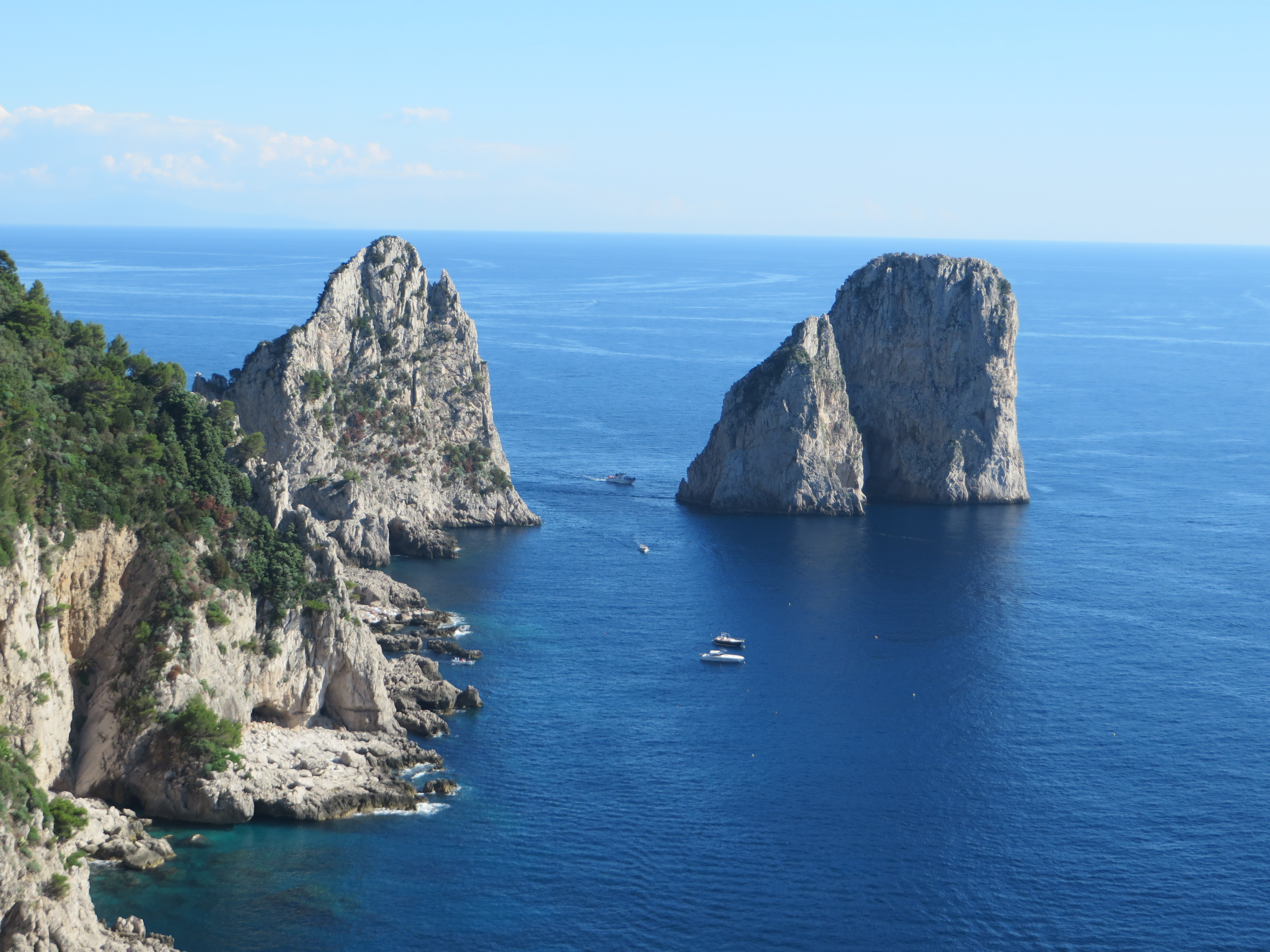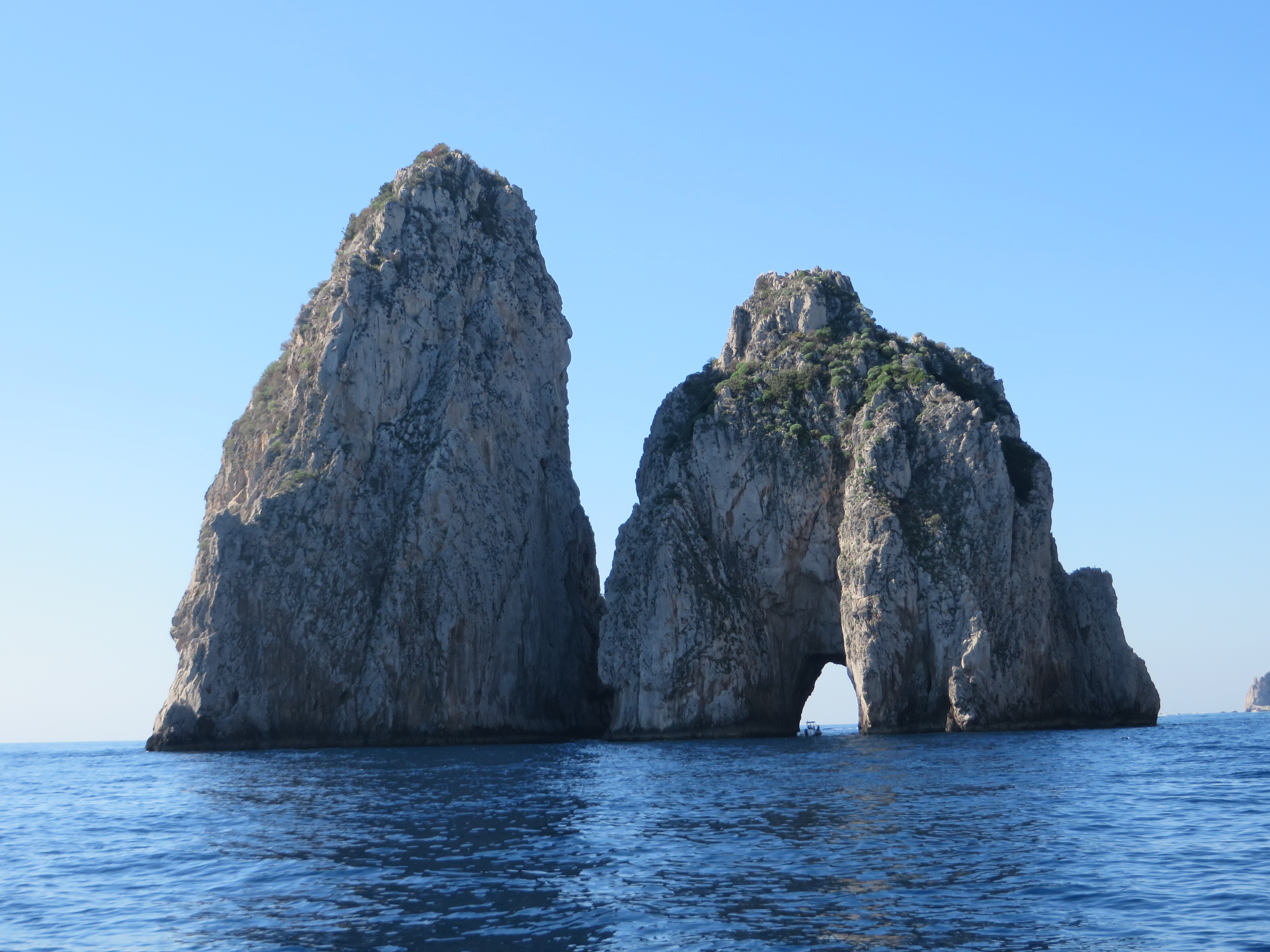 The isle of Capri beckoned. So, off we went on a trip around that fabled island, seeing the green grotto, the white grotto but not the blue. The sea was turquoise, the millionaire’s mansions and the magical limestone rocks were all familiar as if we’d seen them before. I think they are used a lot in advertisements.