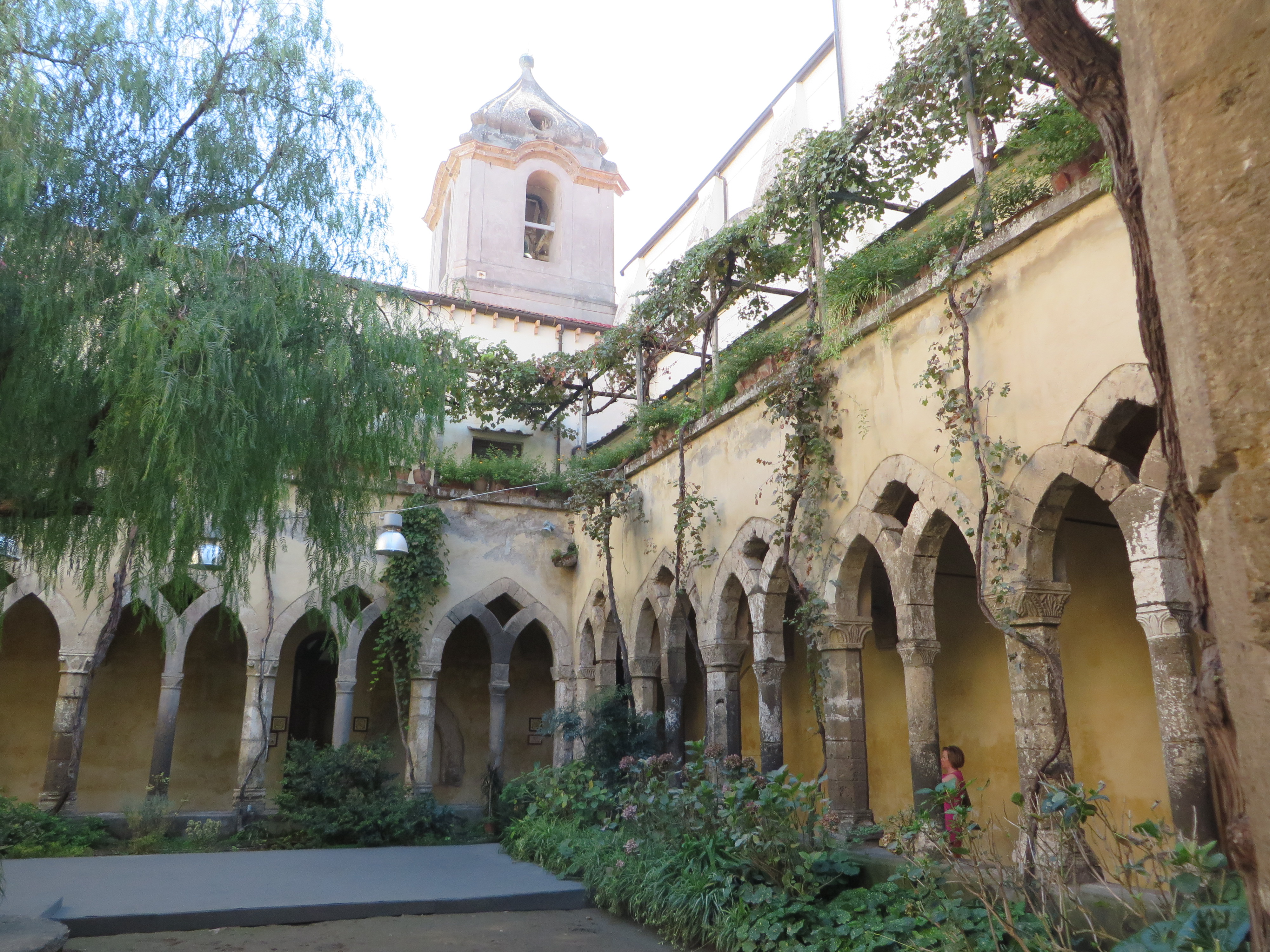 Sorrento was buzzing with tourists. It was like another planet. We decided to visit the church of San Francisco, only to be caught up in a wedding. It was obviously a very classy do. John admired the black Maserati car and the guys in blue suits and sunglasses guarding it. I admired the super-high heels and high fashion that fluttered around the bride. In the old days we wore veils on our heads, but today it seems the fashion is to wear a micro-mini skirt and a matching veil that falls to the ankles to protect the modesty of one’s knees. How those elegant creatures walked on the cobblestones I do not know – but the drone does, as it was filming everything.