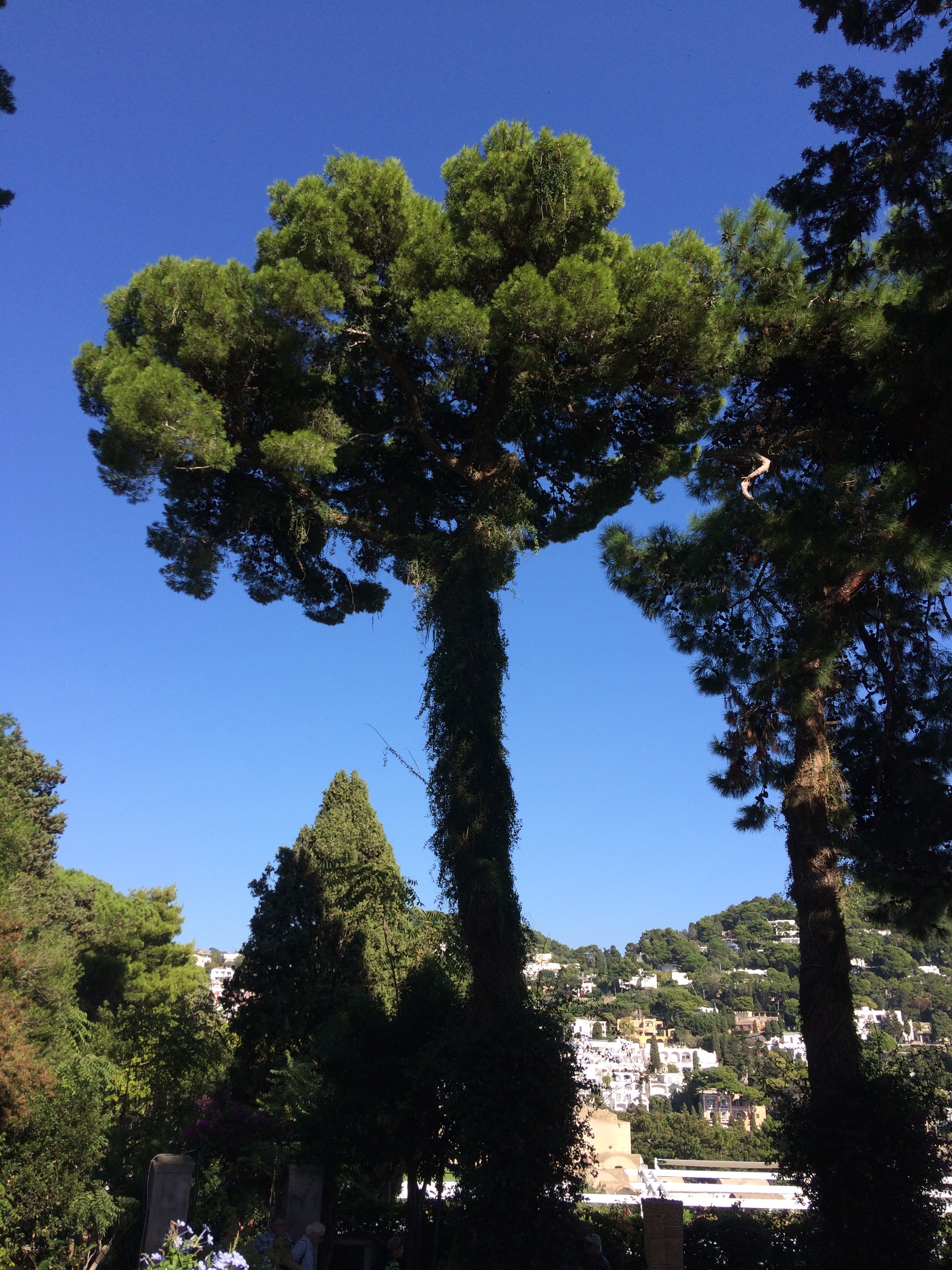 Ana Capri, further up the island and accessed by a series of S bends, by contrast was quieter, and we ate an ice cream cake in peace, (waistband ever expanding). It was gentle, and the Villa San Michele had the most stunning views. Walking back, we were met with a black hearse. It was a rectangular box with glass sides, rather like the Sleeping Beauty’s resting place. The villagers had followed the hearse and all the shopkeepers came out and taxi and bus drivers stood and paid respect. We too stood. It was quite powerful. The coffin was removed and taken by a more modern vehicle to the jetty where presumably it would be going to rest on the mainland somewhere. So – two funerals and a wedding so far.