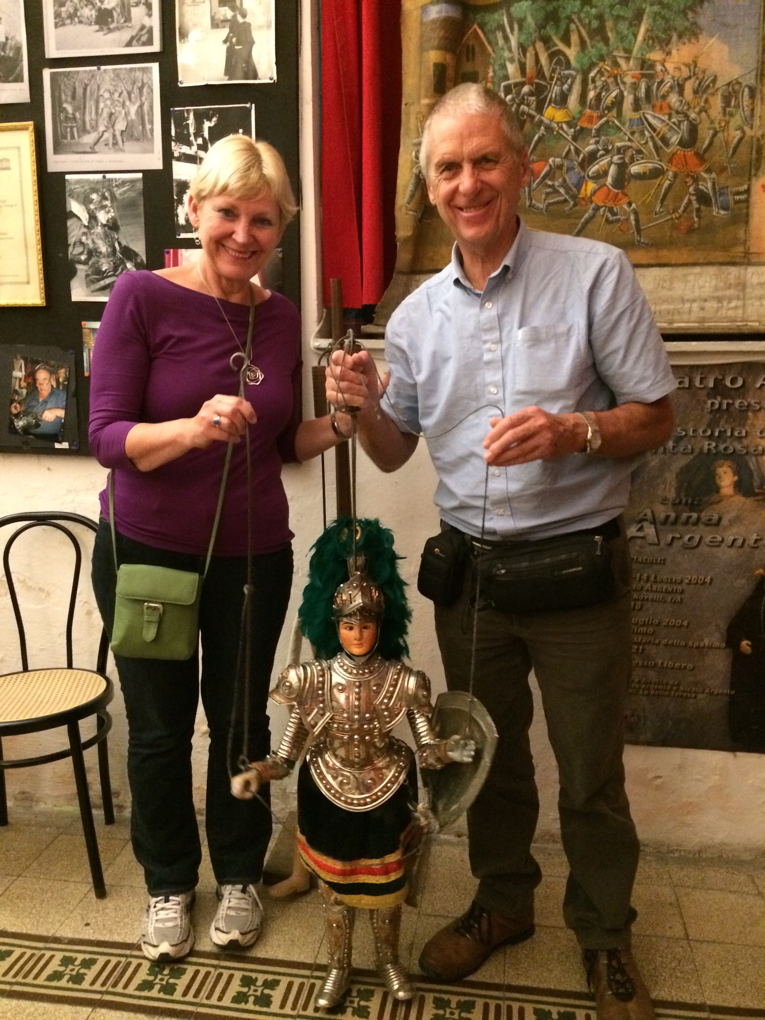 For light relief we decided to go to the Puppet Show. John was quite growly about this, as he didn’t want to watch some kid’s show. It was a family affair; the grandfather, then the father and now the son and his son all make and perform the knightly tales of valour and bravery. To me there was a lot of violence and swords and killing and beheading. Very chivalric stuff. John was agog and totally loved it!