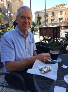 The massive ferry we got to Palermo was like a cruise ship. We had en suite rooms, decks, just everything. As we set sail from Naples a huge flock of seagulls chased the ship, dive bombing in clouds into the froth of the breaking bow waves. I have never seen anything like it. Maybe fishes were rising to the light? Whatever – it was a splendid dinner time for the birds.