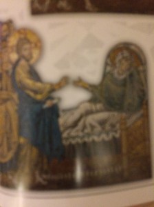 Later we bought a book, and read about the plans of the church and what the stories were depicting. Obviously I recognised the baptism of Jesus, Joseph’s dream, Noah and his ark, the miracle of the fishes but what was this, the ‘healing of Peter’s mother-in-law’??? I don’t know that one.