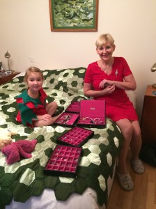 And my resolution this year is to tidy out all my cupboards and drawers. I have already done my socks and jumpers, but you should see my sewing drawers… Oh dear me. Still, it’s only January! I did make a start with my jewellery. Bonnie was very keen to help. ‘Let’s go and look at your jewellery again, Granny. I can help you, I have to work all the time in my house, I have to lay the cutlery and wash the dishes.’ Poor little Cinderella! Or should I say Christmas elf.
