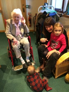 We did drive to Forfar to visit my mum, who just loved the visit. Leo got entangled with one old lady (91) who was sitting with her husband of 70 years. They had received a letter from the Queen, and an interview in the Courier. ‘What is your recipe for such a long happy marriage?’ she was asked. And she nodded sagely to Leo, ‘You have to find a kindly man.’ Nice.