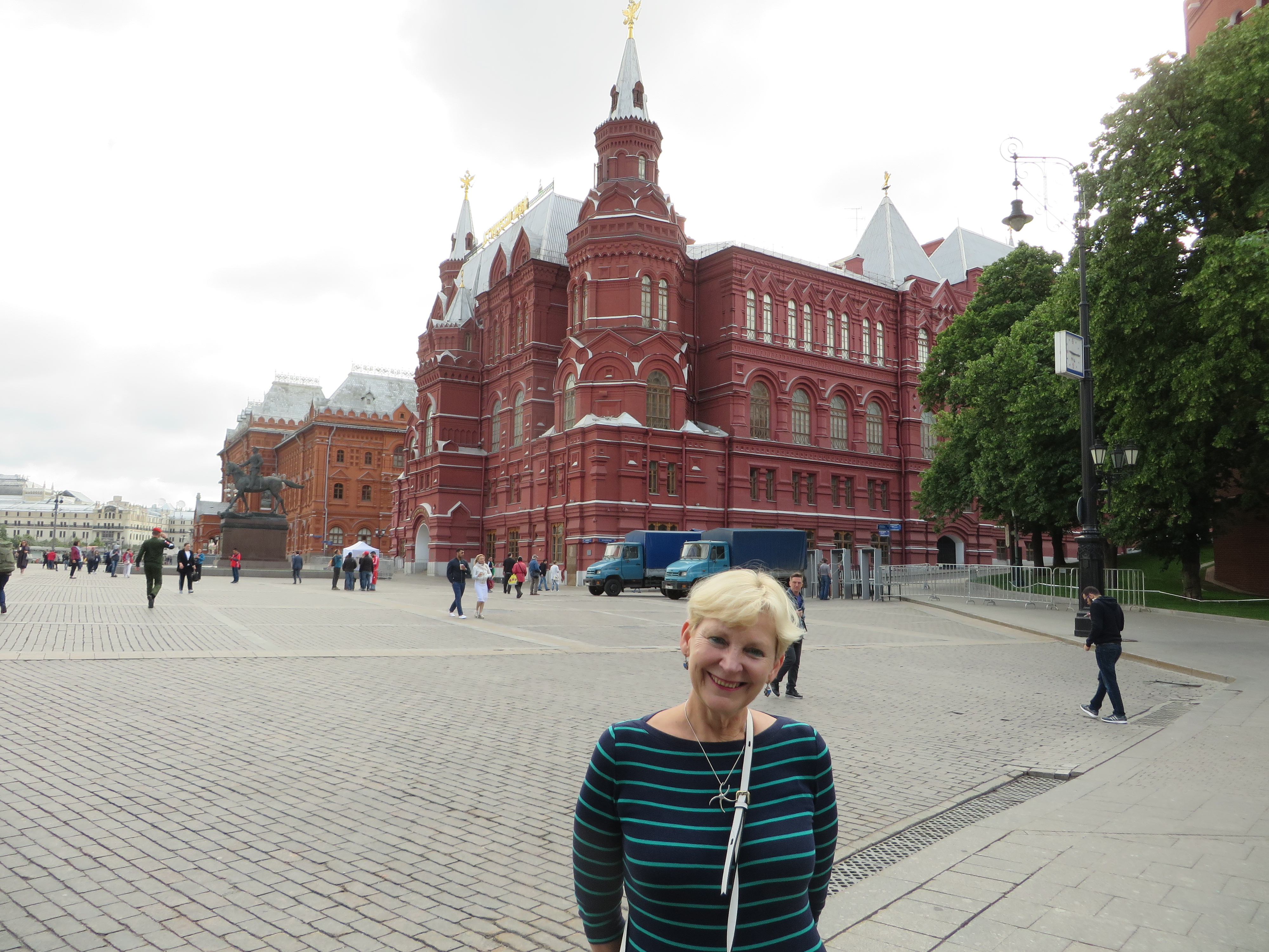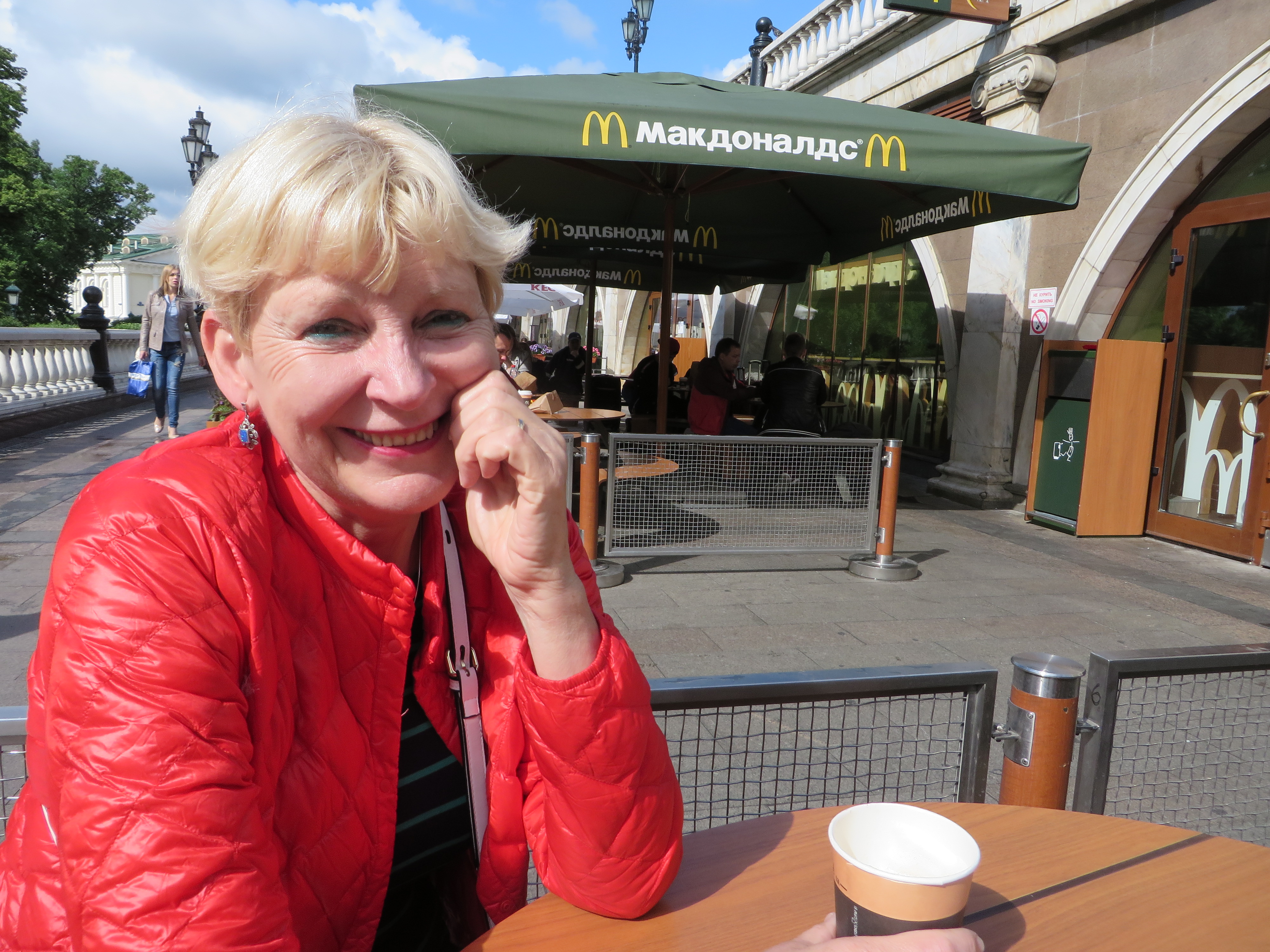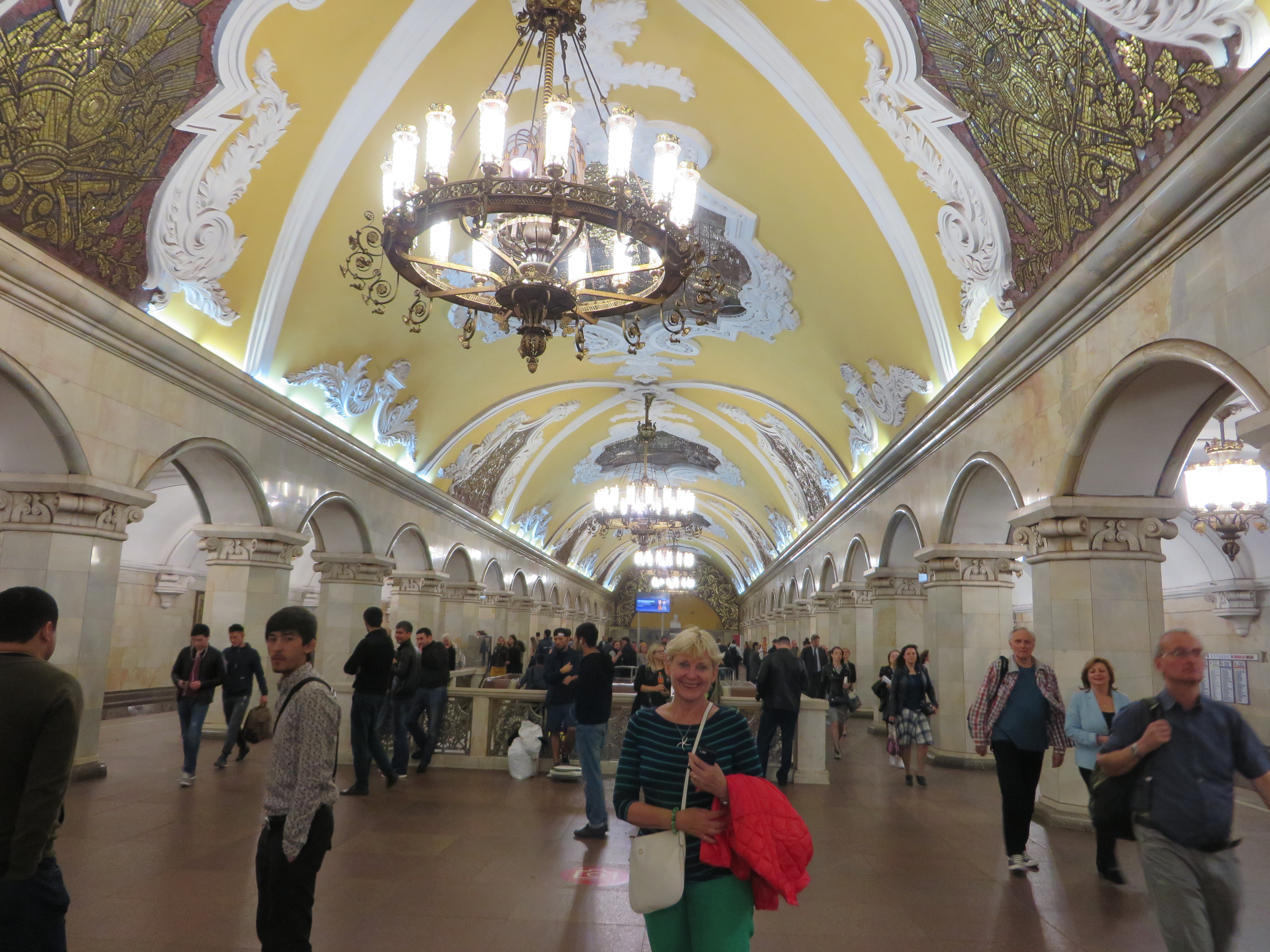 Everyone poured off the train, and John and I were met by a man from Kazakhstan in a sad looking Lada. Here was the promised ‘tourist ambassador’ to guide us to the hotel. The boot was full of a huge oil drum, so our poor beleaguered luggage was squashed in and the rest rammed on our laps. No luxury then. We had booked into the Hilton, and our man from Kazakhstan looked about, after following us into the lobby, not carrying any cases and said, ‘fancy place.’ He gave us a tourist map, highlighted the metro routes and said, ‘goodbye, have a good time in Moscow.’