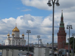 We walked in the sunshine around the Kremlin walls, admiring the glittering gold domes of the churches, and finally came right up to the best of them all – St Basils.
