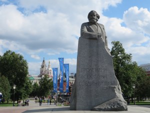 We walked away from Red Square and down to the old Metropole Hotel, and across the square where Karl Marx stood proudly with a pigeon on his head.
