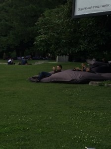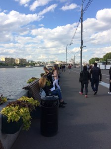 But the park was beautiful, serene and quiet. The greenery such a relief after the frenetic scenes of Red Square. We watched sweethearts walk by the River Moskva and people playing ping pong and lying on giant bean bags.