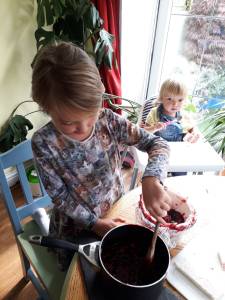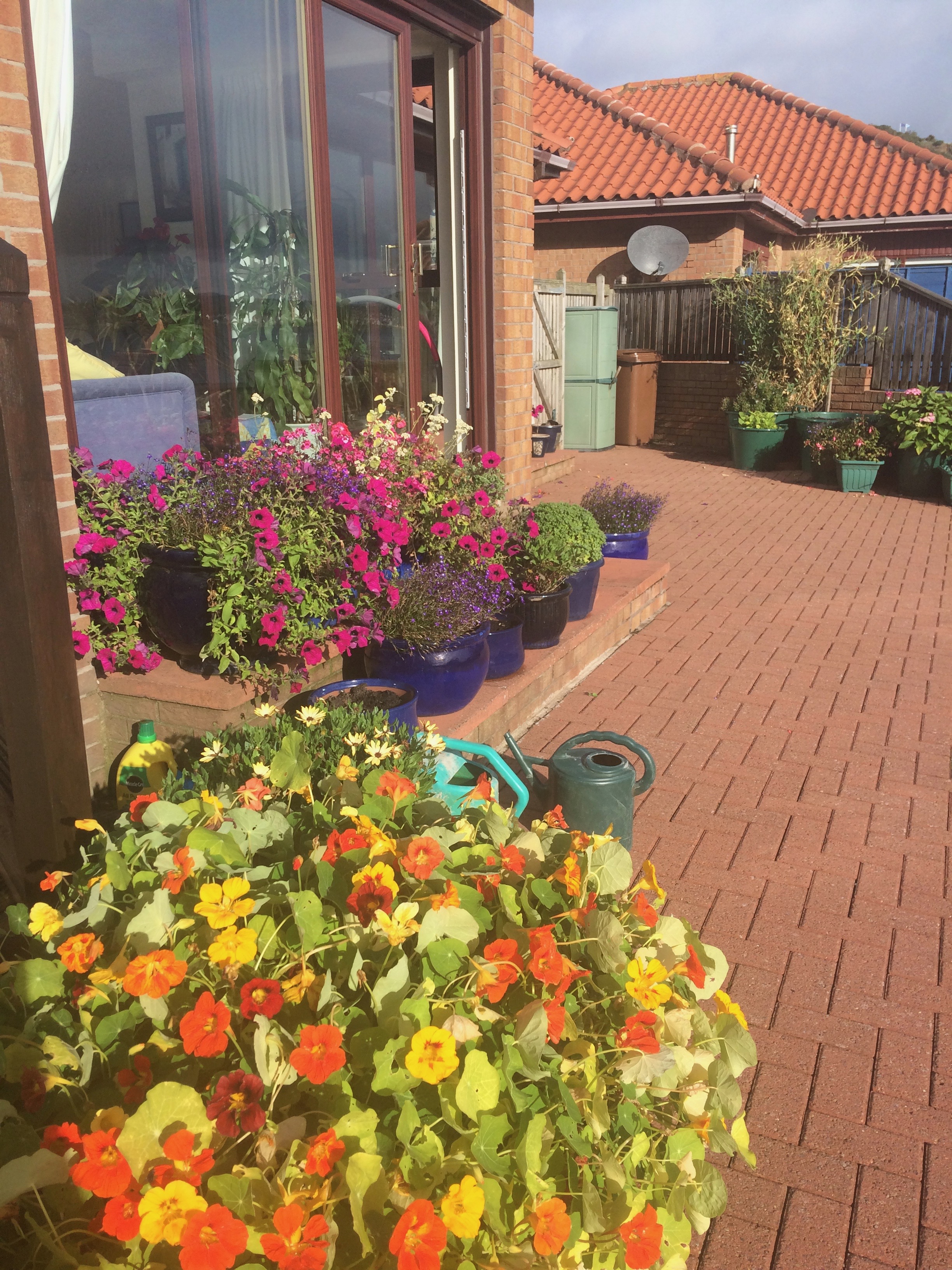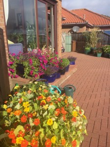 The brambles are divine this year, and we gorged ourselves along the East Coast path, and every morning I admire the spiders’ webs strung along the roses and across the washing line in gay abandon. Gerry was horrified yesterday as she walked into the equivalent of Charlotte’s Web and a million little spiderlings flung themselves at her head and dashed about in amongst her hair and down her neck! She even thinks she ate a few. Meanwhile I await the autumn crocuses I planted… so far in vain. I shall be very disappointed if they don’t appear.