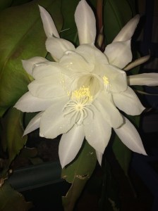 I loved the Poison Garden, full of dire warnings of the most evil outcomes of sniffing, touching and swallowing the most mundane of plants. Did you know that all green parts of the aubergine are poisonous? The castor oil plant is a source of ricin, a deadly poison with no known antidote. It is feared in chemical warfare. It was the poison placed on the tip of an umbrella used to murder the Bulgarian dissident. And Oleander! Apparently it is believed to be dangerous to sleep in the same room as this plant! I am in awe of such natural beauty, and am happy to respect their biological makeup, but really, I am not one to munch my way through a meadow or a garden. At the moment, I am waiting for my King Wa plant to produce three more flowers. I really thought it was done this year, but no… we have a curtain call. Such an exquisite flower which sadly only flowers at night and is wilted by the morning. Natasha cut one of the blooms at night and put it in the fridge for Bonnie to see in the morning. So much beauty for such a short time.