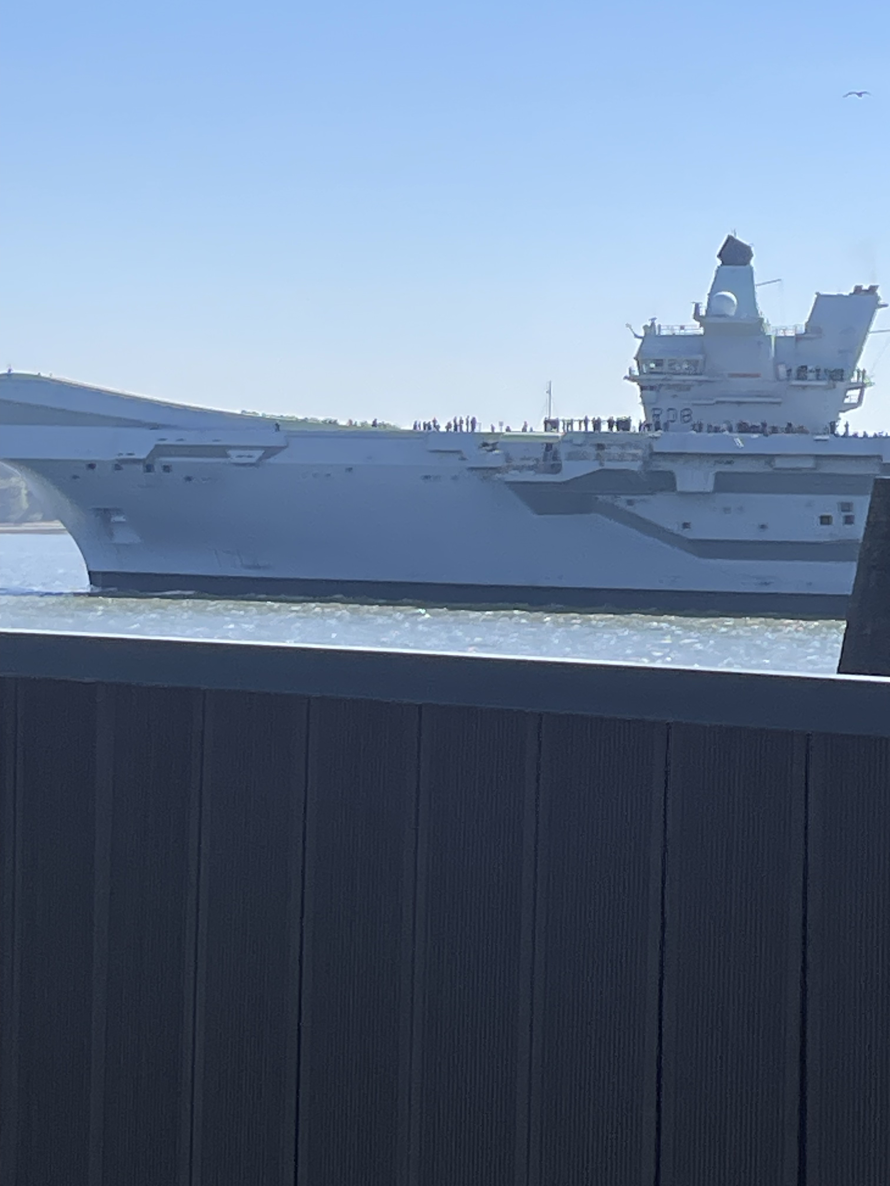 It’s April, and Spring, and everywhere there are the signs of new beginnings. I am looking out at a chilly sea, with sailing boats whizzing by and participants in the race no doubt feeling wild and exhilarated. A few days ago, the giant form of the aircraft carrier, the Queen Elizabeth, sailed by incredibly close to our sea wall. I could see the faces of the lads on deck, waving as they passed. Up close and personal, the ship is mighty, but from afar it looks a mere speck. Today the tulips have been flattened by the fierce East winds, and the sea is pewter with large and agitated waves. I hope the racing sailors are hanging on tight.
