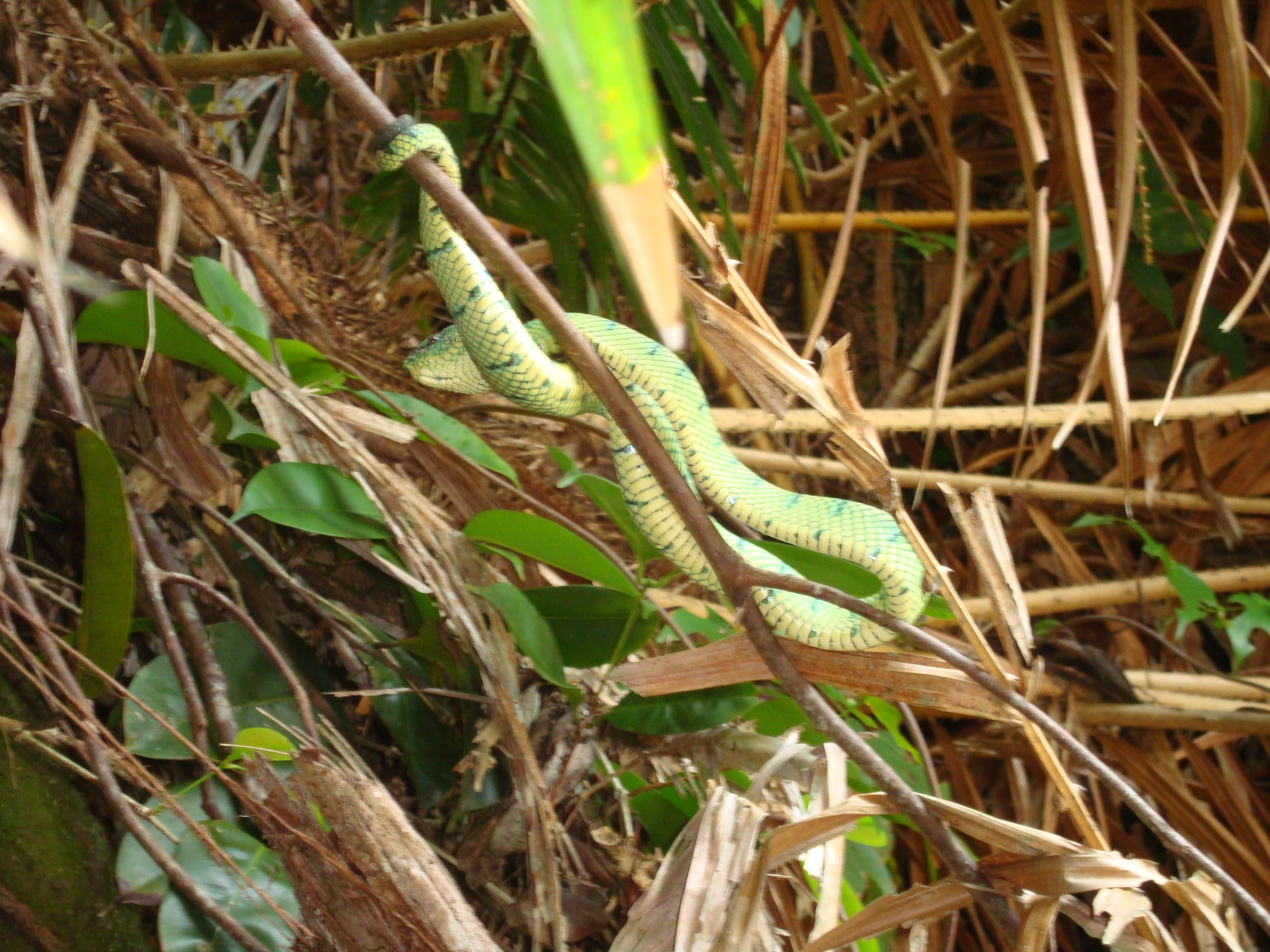 and had lunch just beside a green pit viper that was snoozing on a branch.