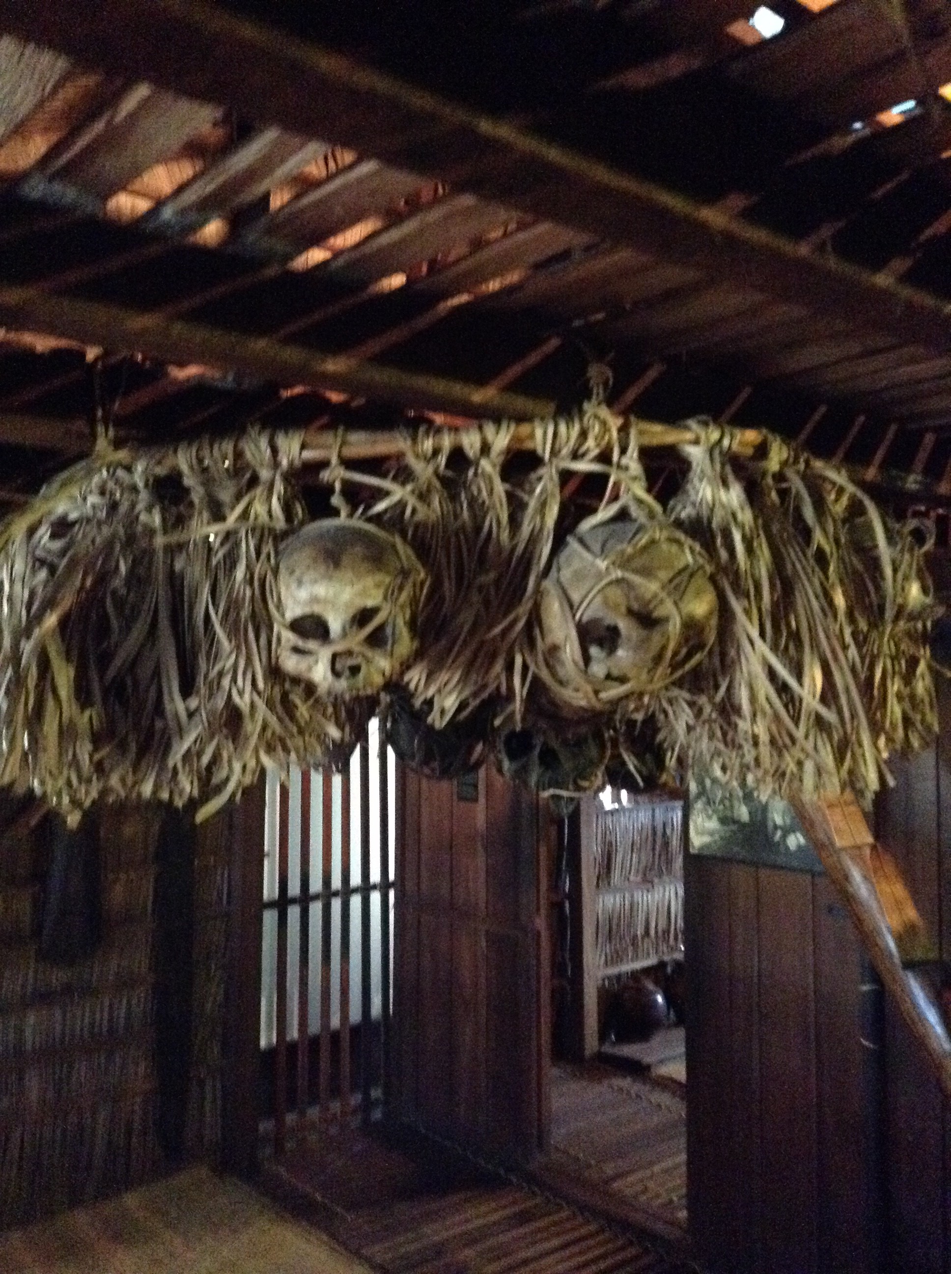 We did have a quick whirlwind tour of the Museum graced with a large plaster Rajah Brooke butterfly on its side, and we saw all the anthropology, ethnology, zoology and geology that have been collected. We were quite enthralled with a giant fur ball that had been removed from a 15ft man eating crocodile. It had a dental plate still attached. There was also a watch that had been removed from the stomach. There were replicas of flora, fauna and longhouses, complete with skulls hanging to deter invaders.
